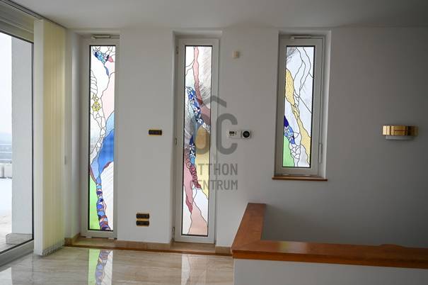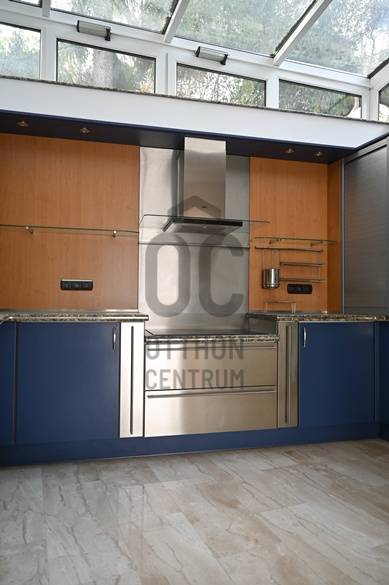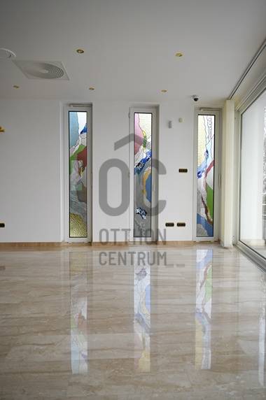 Eladó ez az 510 nm-es, 3 szintes luxus családi ház Adyligeten, 158 nm teraszos, 949nm telken. Legfelső (a bejárati) szinten a 63 nm nappali fogad bennünket egy impozáns körpanorámás, 37 nm-es terasszal. A középső szinten helyezkedik el a 80 nm-es családi nappali, a hozzátartozó 100 nm-es terasszal, az étkezővel és a szeparált üvegtetős konyhával. A konyhához tartozik egy temperálható hőmérsékletű kamra, mely ideális frissáru vagy akár bortároló lehet.Ezen a szinten találjuk az átriumos, üvegtetős, kétterű vendég mosdót. Szintén ezen a szinten helyezkedik el a tágas, teremgarázs, amely alkalmas 2 nagy autó levegős elhelyezésére és a tároló, amely praktikus vizes helyiség (ipari mosogatóval) és itt található a ház vízlágyító rendszere is. A legalsó szinten 4 hálószoba (16, 21, 23, 24 nm) gardróbokkal, és 3 fürdőszoba található, amelyek közül az átriumos fő fürdőszoba elektromosan nyitható tetőablaka biztosítja a természetes fényt a ház legalsó szintjén is.A sarok (vendég) hálószobának 10 nm-es terasza van. Ezen a szinten alakították ki a 65 nm-es, automata vízforgatóval rendelkező török fürdőt (olasz mozaik, 24 karátos arany elemekkel), ahol masszázs medence, szauna, japán stílusú sziklacsobogó, bár és mozaikborítású zuhany található. A török fürdő mellet, különálló helyiségben található egy 37 nm-es konditeremnek is használható tágas helyiség bordásfallal. Ezt a helyiséget „L” alakban beépített, teljes méretében tükrös, nagyméretű gardróbszekrények veszik körbe, nagy tárolási kapacitást biztosítva még túlméretes tárgyaknak is. Ennek a helyiségnek a padlózata alatt található a ház automata szennyvíz-átemelő rendszere. A szemközti teljes falfelületen találhatóak az elektromos kapcsoló- és biztosíték táblák és a biztonsági kamerarendszer ellenőrző egysége és egy kisméretű beépített páncélszekrény is, melyeket faborítású tolóajtó rejt el.Biztonsági szolgálathoz beköthető, modern riasztó- és kapu video rendszer, amerikai, rejtett légcsatornás klíma rendszer, rejtett kábelezésű TV és Hi-Fi rendszer, energiatakarékos LED égők, padló- és radiátor-fűtés, új nagy teljesítményű kazán (Ariston), fűthető garázsfelhajtó, automata garázskapu rendszer. Minden helyiségben pánikgomb. Extrák:Nagy felületű ólomüvegek a ház minden helyiségében, melyek olyan művészek egyedi alkotásai, akik a Parlament, a Posta Takarékpénztár, a Gresham Palota (Four Seasons Hotel) és jó néhány vidéki gótikus stílusú templom számos üvegablakát is munkájuknak mondhatják. Egyedi, tömör, keményfából, speciális eljárással hajlított csigalépcső, spirális korláttal. Kézi munka. Erdélyi mester műve.A házat megalkotók számára belsőépítészetileg a legfontosabb szempont az épületet mindenhol átjáró természetes fény szabad áramlása és még a legalsóbb szinteken is a maximális besugárzás volt.Burkolatok: Gránit, márvány, krómacél, tükör, ólomüveg, tömör fa parketta, mozaik, fa, üvegtégla, Az egyedülálló panoráma feltételezi a telek meredekségét, de a háznak mégis van egy rendezett és igényesen kialakított, tágas előkertje, ősfenyőkkel (+30 év), a terméskő támfalban beültetett fa ülőfülkékkel, és egy jelentős gyepfelülettel, ami az egy szinttel lejjebb elhelyezkedő teremgarázs pázsit-teteje.Teljes körű konyha felújítás:AEG konyhagépek:Extra széles érintőkapcsolós, indukciós-kerámia főzőfelület, Cook-Assist programmal,Beépített sütő, nagyméretű sütőtér, Set&Go időzítés, érintőkapcsolós vezérlés, automatikus receptprogram 90 recepttel, 20 programos memóriahellyel, 5 polcmagasság, 3 sütési szint, húshőmérő maghőmérséklet-kijelzés, valós hőfokkijelzés, hőmérséklet-javaslat, maradék hő-kijelzés, SoftMotion lágyan csukódó, kinyitási pozíciót megtartó ajtó, elektronikus ajtózár funkció, ujjlenyomatmentes felület, teleszkópos sütősin, pirolikus öntisztítási funkció (500 C fokon, 3 program, emlékeztető)Grillező funkciós beépített mikrohullámú sütő, LCD-kijelző, elektronikus időzítés, gyorsindítás, kombi üzemmód, 10 automata sütőprogram súlybeállítással, 2 felolvasztási üzemmód, 5 teljesítményszint,Extra széles krómacél, üveg és kerámia érintőpaneles páraelszívó, 3+1 (intenzív/szellőző) fokozat, zsírszűrős alumíniumkazetta, H2H kompatibilis, vezérelhető az AEG kerámia főzőfelület által (a főzőfelület és a páraelszívó kommunikálnak egymással)Extra méretű, szabadon álló un.”Side-by-Side” leolvasztás mentes hűtőgép, rozsdamentes acél ajtók, acélfogantyúk, ajtóriasztás (fény, hang), tágas belső rakodótér, Coolmatic és Frostmatic funkciók, professzionális víz-és jégadagoló, gyerekzár, Led-világitás (hűtő, fagyasztó), LCD-kijelző az ajtón, érintőkapcsolós vezérlés, Home Bar nyílás a hűtőajtón (beépített MINIBÁR)Beépített mosogatógép, Aqua Control, Sensorlogic, Inverter motor, TimeSaver és XtraDry funkciók, automatikus ajtónyitás, LCD-kijelző, idővisszajelzés, késleltetett indítás, AutoSense automatikus program, só-és öblítőszer utántöltés kijelzés, AEG Mosógép, Inverter motor, Gentle Care, ProSense, Aqua Control, Woolmark Blue minősítés, pillanatmegállítás, XL betöltő-nyílás, Silent System Plus, Soft Plus, áramszünet memória funkció, AEG nagyteljesítményű, kondenzációs szárítógép, Inverter motor, Silent System Plus, AutoOff funkció, Easy Flow filter, késleltetett indítás, nagyméretű, átlátszó adagoló ajtó, nagyméretű LCD kijelző, irányváltási funkció, szűrő és tartály telítettségi kijelző, nedvességérzékelés, Teljes körű kazán csere: Új Ariston energiatakarékos, kondenz