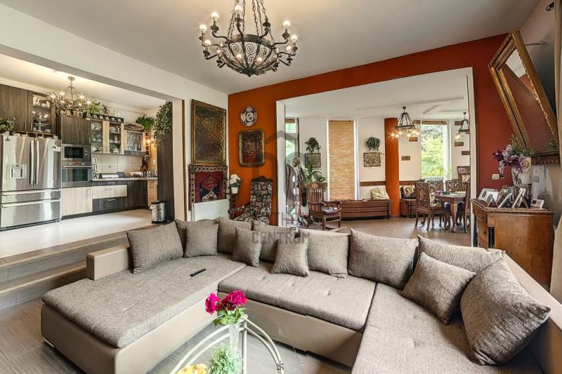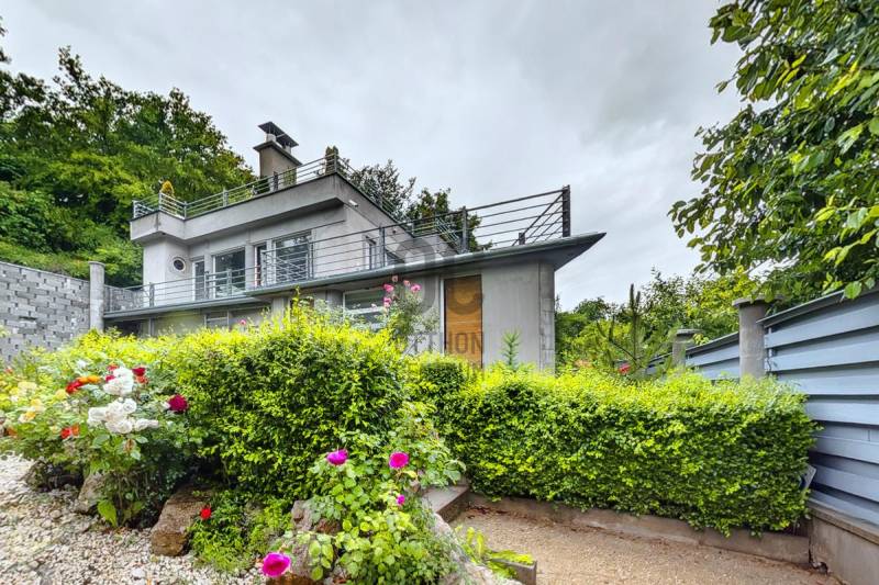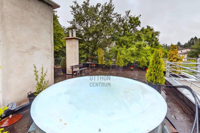 Eladó egy kétgenerációs családi ház, mely két család intim együttélésére kivállóan alkalmas.Érd, egyik legnívósabb illetve legdinamikusabban épülő helyén a Parkvárosban, eladásra kínálunk egy 10 éve épült, többgenerációs építésű családiházat. Az ingatlan meghitt hangulatát fokozza az őt körülvevő erdő és mediterrán jellegű növényzet, ahol több közismert személyiségnek illetve közszereplőnek is található az otthona. Továbbá a dinamikusan fejlődő rész annak köszönhető, hogy számos nagy villa, illetve projekt épülőben a környéken.A házról:Az előtérből, a család minden kényelmi igényét biztosító nagy nappali-étkezőbe érkezünk, amelyből az összes további szoba nyílik.A konyha, két lépcsőfoknak megfelelő szintkülönbséggel magasabban helyezkedik el.A reggeli ébredést követően, kávéját a közvetlen kertbe kilépve, virágok és a zöld gyep környezetében fogyaszthatja el.A hálószoba, a nagyméretű nyílászáróknak köszönhetően rendkívül világos.A háló szomszédságában van egy külön WC és kézmosó, szemben egy zuhanyzós fürdőszoba,valamint egy gardrób.A felső szintet egy külső lépcsőn közelíthetjük meg, ahol egy teljes nappali plusz 2 db. hálószoba, fürdőszoba - teljes lakószint került kialakításra, nagy terasszal. Ennek köszönhetően, akár két generáció is élhet nyugodtan egymás közelében, zavartalanul. Ennek a szintnek a kilátásra a zöld fenyvesekre nyíló panoráma. Az udvaron, egy nagy Tároló vagy (esetleg wellness helység), illetve 2 férőhelyes fedett kocsibeálló lett kialakítva, melynek tetején egy hangulatos tetőkert esetleg napozóterasz található,A háznak is van egy óriási tetőterasza az erdő ölelésében, csodálatos zöld panoráma, medence, sütögető és nyugalom várja a pihenni kívánó családtagokat és barátaikat.A ház mögöt teraszos telek található szintén remek kilátással a völgyre, amelyen a kertet tovább lehet bővíteni, alakítani. A ház intim az utcáról minimálisan lehet belátni.A ház jelenleg befejezésre vár, ugyanis a szigetelése megtörtént viszont a szín kiválasztása a leendő tulajdonosra vár.hívó szavak: zöldre nyíló panoráma, kertesház, nyugalom, kétgenerációs ház, frisslevegő, intim környezet. |