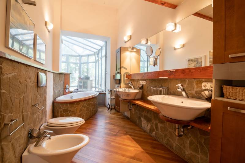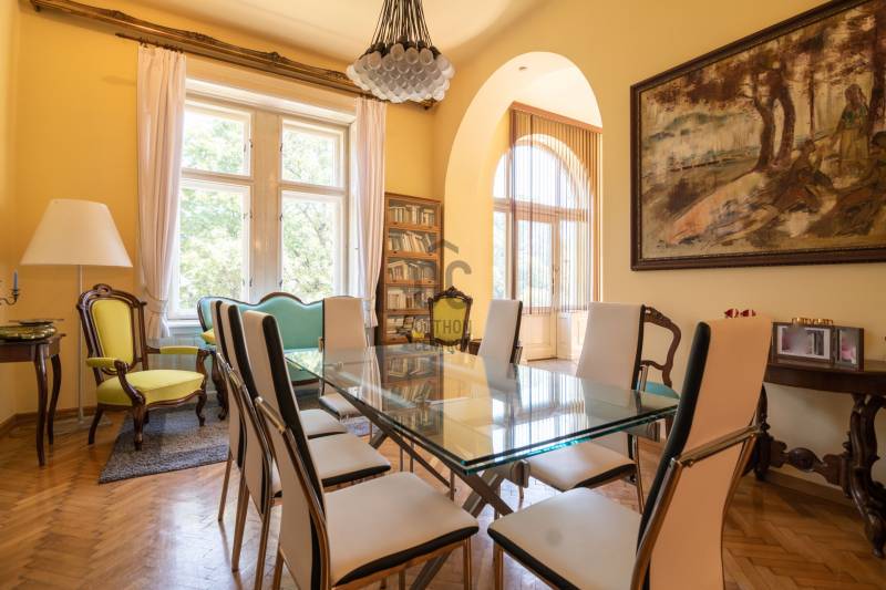 A budai II. kerületi Rózsadomb a főváros és az ország egyik legnagyobb presztízzsel bíró területe.Ha szigorúan vesszük földrajzilag, a szecesszió idején épült nyaraló villa Rézmál városrészhez (melynek jelentése ugyancsak Rózsadomb) tartozik, hiszen a Bimbó út páros oldalán helyezkedik el.Anno az 1890-es évek végén, mikor épült teljesen más volt a környezte. Ma már a kerület egyik frekventált részén helyezkedik el 1319 m2-es telken. A ház múltja és az egykori nagypolgári hangulat megőrzése fontos volt a jelenlegi tulajdonosoknak, így az épület korszerű, ezáltal kényelmes, ugyanakkor hagyománytisztelet és egyfajta időtlen báj árad belőle. Jelenleg 3 emelet biztosítja az életteret 2 generáció számára.A 90-es évek végén, valamint a 2000-es évek elején történt nagyobb felújítás, átépítés az ingatlanon. A háború nyomait eltüntetve, visszakapta színét a homlokzat és a kék ablakok fehér kerettel együttesen pedig visszaidézik a ház eredeti megjelenését. Kulcsfontosságú a szoros kapcsolat a kerttel, így megépítésre került a kíváncsi szempároktól (a ház hátsó részén) elrejtett téli kert, ahonnan egy lépcső vezet le a félszuterén szintre. Itt kialakításra került a rekreációs részleg, mely magába foglalja az épített medencét, gőzterápiás helyiséget, edzőtermet. Mindez tovább bővíthető (szauna, sókamra, moziszoba stb.), hisz a szinten nagyobb helyiségek tárolóként funkcionálnak jelenleg. A medencetérből elérhető teakonyha és a hívogató külső terasz, amik még kellemesebbé és komfortosabbá teszik a kikapcsolódást. Szintén ezen az emeleten „épített” borospince méltó helye nemes gyűjteményeknek és a mellette lévő helyiség akár autentikus helyszíne lehet borvacsoráknak. A szintek közötti mozgást a korabeli lépcsőházon keresztül tehetjük meg.A magasföldszinten, valamint az emeleten is hatalmas, szellős terek uralkodnak. Mindkét emeleten a korábban kisebb felújításokon átesett faablakok, spaletták, magas kazettás beltéri ajtók visszaadják a századforduló hangulatát, akárcsak a szobák klasszikus elrendezései. Sehol nem lett beépítve a közel 4 méteres belmagasság, így adott a nagypolgári miliő. Az ingatlan hasznos alapterülete a tetőtér beépítésével növelhető, mely további ~90 m2 pluszt jelent. A ház fölé magasodó toronyszoba az ingatlan ékköve, mely lépcsőház legfelső részéről közelíthető meg. Az elénk tárúló panoráma elragadó (Parlament, Citadella, Budai Várnegyed, Duna és az őt átszelő hidak). Innen a fővárosunk évszakonként változó arcát kémlelhetjük. Ez a szoba lehet helyszíne mélyenszántó gondolatoknak, vagy a világ elől meghúzódva egy jó könyv olvasásának akár.Ahogy Endrődi Sándor is írta versében: „Itt fenn Budán, a Rózsadombon /Igazán rózsás a világ!...… Itt a dombon, hála Isten, /Jó világ van, /Kis királyként éldegélek/Ebben a kis szürke házban.Minden vágyam teljesül, bár/ Ki se mondom, /S ha elfogy a garasom, hopp! /Arra sincsen semmi gondom.Lenézek a dulakodó / Nagy városra, / Hol az ember embertársát / Sárba löki, megtapossa. –S egyszeriben oly kicsiny lesz/ Minden ottan, / S oly nagy itt fenn, a dombon, hol/ Szeretet és nyugalom van.”Jöjjön el és tekintse meg!Csatlakozzon a villa történetéhez, folytassa azt vagy írja újra teljesen! |