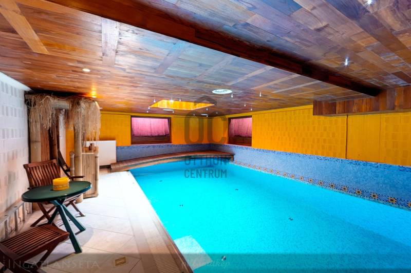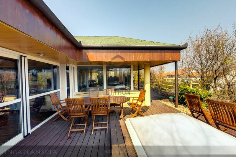 Budajenő legszebb részén a Hilltop I. lakóparkban, 2001-ben épült, nappali + 5 hálószobás, nagy teraszos, medencés családi ház eladó.A 857 nm-es telken, három szinten alakították ki az egyedi hangulatú családi házat, dupla garázzsal, beltéri, fűthető úszómedencével, finn szaunával, kültéri jakuzzival. A ház fűtését és melegvíz-ellátását cirkó gázkazán és napkollektor biztosítja padló és radiátoros hőleadással.Az alsó szinten a két férőhelyes garázs mellett egy minden igényt kielégítő wellness részleg került kialakításra, egy 9x4 m-es feszített víztükrű úszómedence, szauna, külön masszázs szoba, zuhanyzó helyezkedik, illetve itt található a gépház és a mosókonyha.A második szinten található a tágas, közvetlen kertkapcsolatos, kandallós egylégterű nappali -ebédlő - konyha. Hatalmas üvegfelületek biztosítják a fényt, az ebédlő üvegfalai pedig eltolhatók, így jó idő esetén egybenyitható a terasszal, a nappali Dél-keleti fekvésének köszönhetően egész nap benapozott. A konyhában magas minőségű bútor és Miele konyhagépek kerültek beépítésre, kapcsolódik hozzá kamra is. A nappaliból nyílik 3 hálószoba, egy zuhanyzós és egy kádas fürdőszoba, egy wc, és egy gardróbszoba. A teraszon jacuzzi került elhelyezésre, a növényekkel dúsan beültetett kertben egy télikertet - fedett grillezőt alakítottak ki .A legfelső szinten a tetőtérben külön lakrész, nappali + 2 hálószoba fürdőszobával, konyhával található, így a ház két generáció zavartalan együttélésére is alkalmas.A Hilltop Lakópark Budajenő/Telki közigazgatási határán található, a környezet a továbbiakban érintetlen marad, és az építési terület ebben az irányban nem fog tovább bővülni. A lakópark természetesen jó minőségű aszfalt úttal van összekötve a főúttal, a bekötő utat télen, havazás esetén, azonnal járhatóvá teszik, hogy a lakók akadálymentesen tudjanak közlekedni. A lakópark sorompón keresztül közelíthető meg, 24 órás portaszolgálat működik.Budajenő a Fővároshoz közel, könnyen megközelíthető helyen, gyönyörű és nyugodt, természet közeli környezetben fekvő, intimitását őrző, kellemes fekvésű település a Budai hegyek lábánál.Díjmentes, bankfüggetlen hiteltanácsadással támogatjuk vevő ügyfeleinket a számukra legelőnyösebb finanszírozási döntések meghozatalában. Opcionálisan igénybe vehető kiegészítő szolgáltatásainkkal – mint ügyvédi közreműködés, energetikai tanúsítvány vagy villamos biztonsági felülvizsgálat – teljes körű szakmai támogatást nyújtunk az adásvétel folyamatának minden egyes lépésénél. |