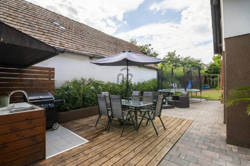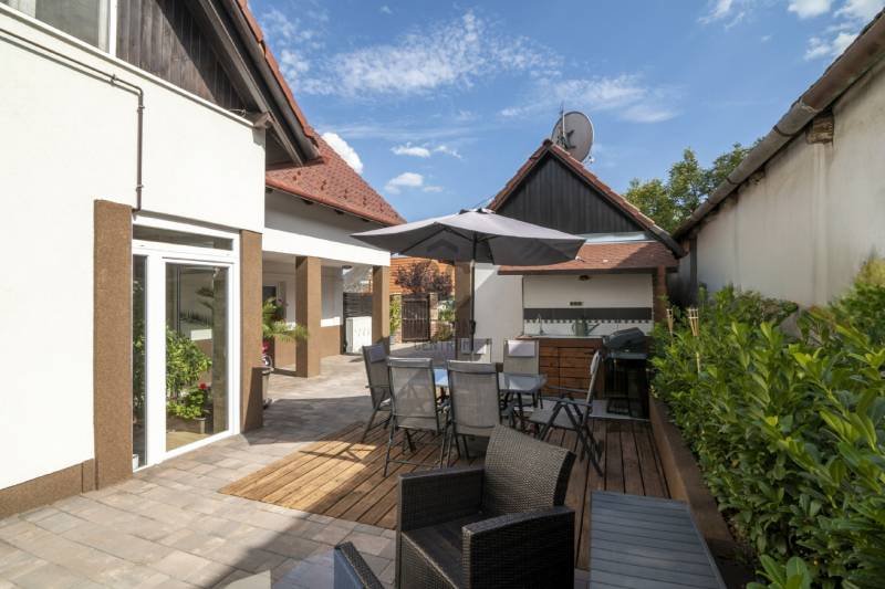 Eladó Törökbálinton egy két szintes családi ház csendes kertvárosi mégis központi részenTörökbálint a Budai agglomeráció egyik legkedveltebb települése, egy gyönyörű sváb település rengeteg helyi történettel, emlékművekkel, színházzal, rendezvényekkel, sportközponttal, uszodával, számos iskolával és óvodával.INGATLAN LEÍRÁSAA telken található egy két szintes nettó 147 nm-es családi ház, ami jelenleg két lakásra van osztva, (de könnyedén összenyitható) illetve egy külön álló nettó 21 nm-es kis ház.A három lakóegység összesen nettó 168 nm (bruttó 230 nm) lakóterületű, mind a három lakás az utcáról külön kapun keresztül közelíthető meg.A földszinti lakás:Nettó 57 nm lakóterületű lakás, 15 nm terasszal.Elrendezése: nagyméretű nappali, konyha sarokkal , 2 kis méretű szoba , zuhanyzós fürdőszoba wc-vel.Az emeleti lakás:Ehhez a lakáshoz tartozik egy udvari gépkocsi beálló, saját kert rész és terasz.A kertből egy kis téli kerten keresztül jutunk el az előszobába, a földszinti részen található még egy tároló.Az emelet elrendezése: nappali - konyha - étkező , 3 szoba, fürdőszoba zuhanyzóval és káddal + wc-vel , külön wc.Külön kis ház:Nettó 21 nm, nappali - konyha, zuhanyzós fürdőszoba wc-vel + galléria, kis terasszal.A ház 1996-ban nyerte el jelenlegi formáját, amikor egy teljes felújításon esett át, amelynek során kibővítették a földszinti részt és egy plusz emeletet építettek rá. Az épületben sok éven át étterem és különböző üzlethelyiségek működtek. 2018-ban teljes belső átalakítást végeztek, amelynek eredményeként három lakást alakítottak ki. Két éve a külső homlokzatot újra szigetelték és vakolták.TÖRÖKBÁLINTMa Törökbálint olyan város, amely egyrészről megtartotta falusias jellegét, másrészről pedig lakosságának kvalifikáltsága, az itt élő emberek \"Bálintszeretete\", a különböző közösségek alkotóereje, az itt működő vállalkozások sikere méltó helyet vívott ki magának Magyarországon, Budapest szomszédságában.A közelben minden megtalálható, ami a mindennapi élethez szükséges: boltok, gyógyszertár, óvoda, iskola, posta, cukrászda, buszmegálló 5 percen belül elérhető akár gyalogosan is.A közlekedés kiváló, autóval néhány perc alatt elérhető az M0, M1 és M7 autópálya, illetve tömegközlekedéssel is 20 perc alatt elérhető a Kelenföldi pályaudvar.Kiváló elhelyezkedése és zöldövezeti környezete miatt, meglátja és rögtön beleszeret.Amennyiben felkeltette érdeklődését a hirdetés, várom hívását. |
