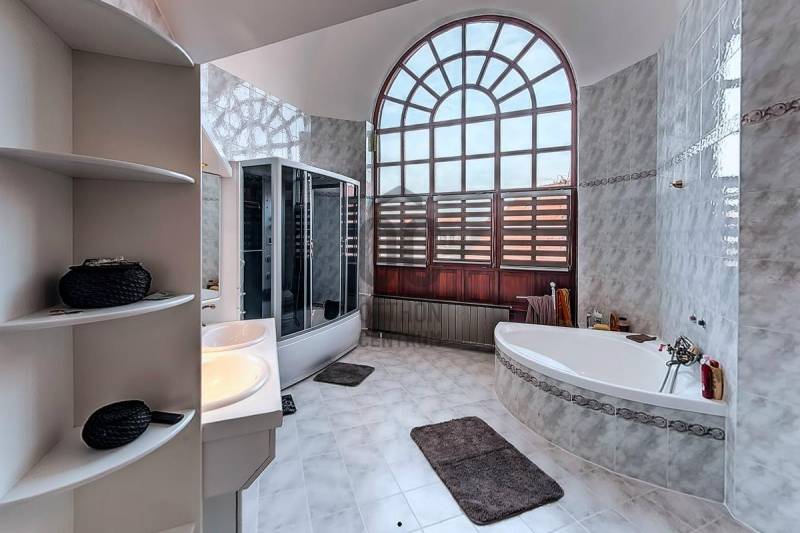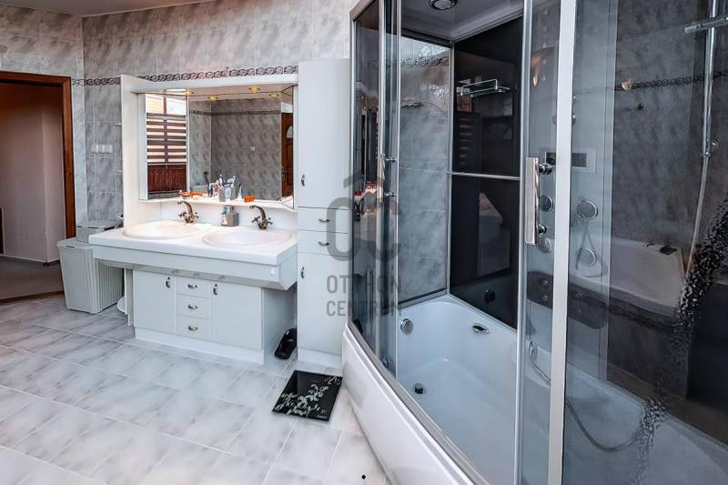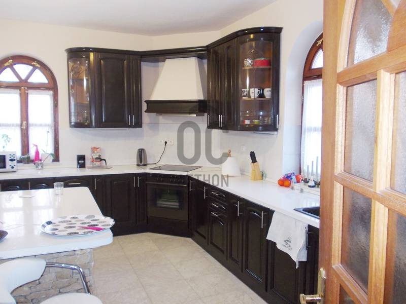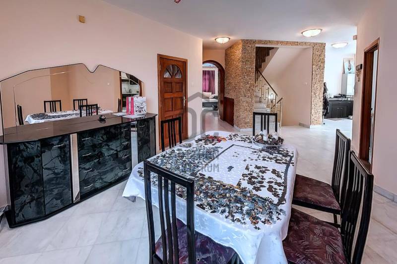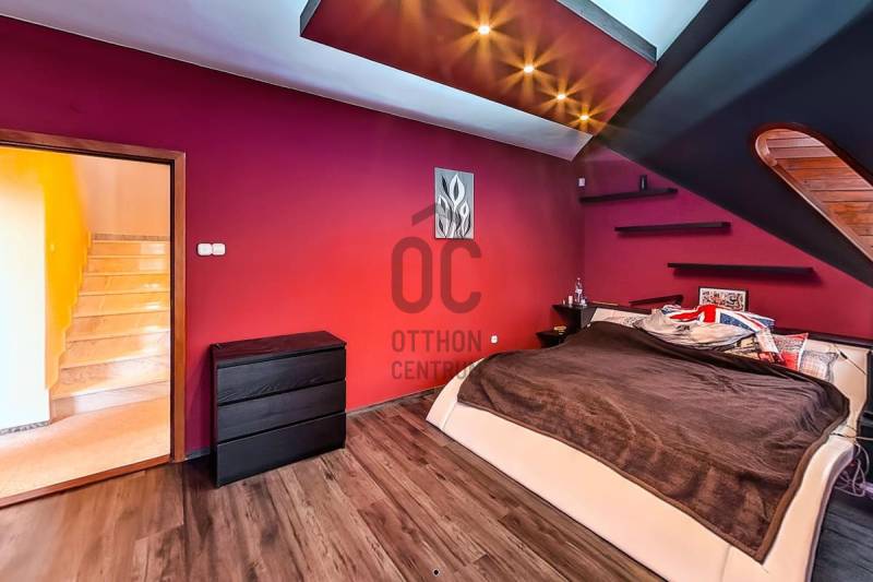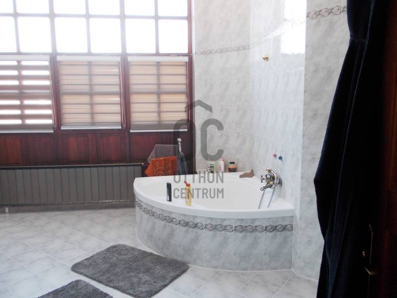 Tordason,800 m2-es panorámás, összközműves telekre, 1992-ben épült, négyszintes, exkluzív kivitelezésű, nappali négyszobás, 293 m2 hasznos lakóterű,(bruttó 340 m2), családi ház, három autó befogadására alkalmas garázzsal eladó. Nemrégen napelemek telepítése történt (9kw), mely áramtermelése fedezi az áramfogyasztást és a tető új kanadai zsindely héjalást kapott. Az ingatlan pinceszintje alkalmas lehet iroda, üzlet, szépségszalon, konditerem, vagy akár egy külön lakás kialakítására is, így befektetésnek is kiváló. A tágas helyiségeken kívül egy zuhanyzó egy mellékhelyiség és egy szauna is található itt.A második szinten egy hatalmas nappali, egy tágas étkező, egy konyha és egy mellékhelyiség található.A következő szinten helyezkedik el a három hálószoba, két gardróbbal, egy hatalmas fürdőszoba, és egy dolgozó.A legfelső szint, a tetőtér egy légtérből áll, de itt is kialakíthatók további szobák. A ház beton sávalapra, 38-as falazóblokkból, fa gerendás födémmel, betoncserép fedéssel épült, egyedi kivitelezésű vörösfenyő-fa dupla üvegezésű nyílászárókkal van ellátva. A radiátoros fűtést minden helyiségben és a meleg vizet villanykazán szolgáltatja, e telepített napelemes rásegítéssel. Az elmúlt évben belső felújítások, korszerűsítések történtek. Az ingatlan Tordason található, a központtól kb. 1000 méterre.Tordas Fejér megyében található, Budapest kb. 30 km, Székesfehérvár 38 km távolságban van.Autóval az M7 autópályán közelíthető meg, de tömegközlekedéssel-autóbusz, vonat-is elérhető.Ajánlom azoknak, akik egyedi ingatlanra vágynak távol a nagyváros zajától, de mégis elérhető távolságban! |