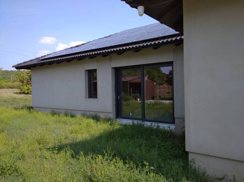 Pákozd frekventált utcájában, ÚJ MODERN ÉPÍTÉSŰ nettó 169,84 m2-es ,fölszintes nagy nappali-étkező-konyha - nagy TERASZ, 4 szobás, 2 fürdőszobás, vendég wc-s, 2 állásos garázzsal épülő HÁZ ELADÓ!Az előírásoknak megfelelően 5m-es előkerttel és 6 m-es hátsóoldali távolsággal épülő MODERN EGYSZINTES HÁZ, tágas nappali-étkezővel, melyhez kapcsolódik a konyha , illetve a pergolás TERASZ, valamint a konyha teréből nyíló kamra is.Az étkező-nappali teréből érhető el a szülői háló, melyhez egy fürdőszoba kapcsolódik és a közlekedő is elérhető.A közlekedőből a három hálószoba és a fürdő közelíthető meg.Megfelelő feltételek esetén a szaniter és a burkolatok VÁLASZTHATÓK!Az idén még igénybe vehető CSALÁDTÁMOGATÁSOK:- CSOK+- 3%-os CSOK HITEL- 5%-os Áfa visszatérítés-ILLETÉKMENTESSÉGMűszaki:- vasbeton sávalapra épül- tartófalak POROTHERM falazóblokkal épülnek- válaszfalak 10 cm-es válaszfallapokból készül- födém: monolit vb födémmel készül- tetőszerkezet: kontytető 10x15 cm-es szalufa,15x15 cm-es szelemen, 5x 15 cm-es fogópár keresztmetszetekkel fedélszékterv szerint készül, antracit cserép héjalással.- nyílászárók műanyagszerkezetűek, ALBALUX típusúak ANTRACIT színben, alumínium, automata redőnyökkel szúnyoghálóval ellátva.- fűtés-hűtés HŐSZIVATTYÚVAL padlófűtéssel és mennyezeti hűtés-fűtéssel megoldott, mely ráadásul helyiségenként távirányítással külön-külön szabályozható!- 16,2 Kw-os napelem biztosítja a ház teljes áramellátását- Kandalónak külön kémény biztosított!Automata garázskapun keresztül jutunk a 2 állásos garázsba, melyben külön helyet kapott a GÉPÉSZETI rész is.A kivitelező régi partnerünk, számos referenciáját tudjuk megmutatni!A HÁZ újépítésű családiházas környezetben épül, megfelelő zöld felülettel.A közelben buszmegálló, az M7-es autópálya 5 perc, Székesfehérvár szintén 5 per távolságban elérhetők.Irodaiazonosító: U0045236újépítés, hőszivattyú, zöld, kert, vidék, megújuló energia |