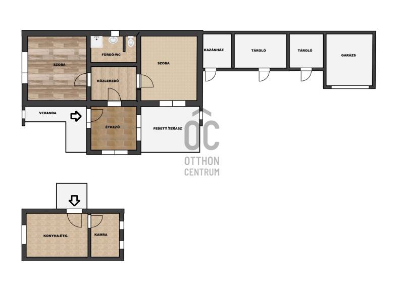 Aba kedvelt lakóövezeti részén 72,3m2-es, 2 szobás rendezett, fedett teraszos ház, tárolókkal, garázzsal, kertel eladó.A HÁZ SZÉKESFEHÉRVÁRI LAKÁS ÉRTÉKEGYEZTETÉSSEL IS MEGVÁSÁROLHATÓ!Az ingatlan kiemelt tulajdonságai:- telek 1329 m2, rendezett, művelés alatt áll.- udvaron ásott kút hidroforral- thermo üvegezésű műanyag nyílászárók, redőnnyel felszereltek- fűtés gázkazánról és új vegyes tüzelésű kazánról működik, radiátoros hőleadással- 8 éve a teljes tetőfelújítás- fürdőszoba, konyha felújítás, vízvezetékek cseréje megtörtént Szobák laminált parkettával és szőnyegpadlóval, többi helyiség járólap aljzat burkolattal van borítva. Melegvízet villanybojler adja.Környék A ház lakóövezeti területen, rendezett utcában, kedves szomszédok környezetében helyezkedik el. Székesfehérvár belvárosából 30 perc alatt elérhető autóval. Jó az autóbusz és a vasútközlekedés. Az állomás 10 perc alatt elérhető. |