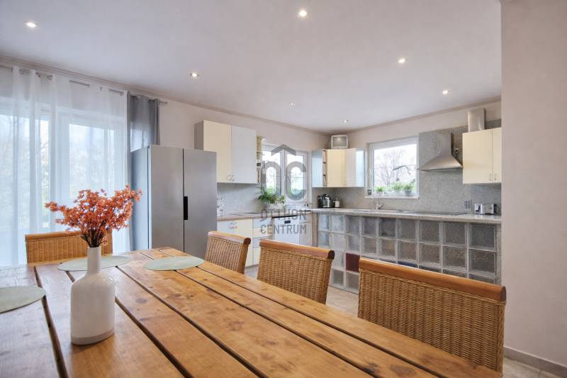 Amennyiben egy kényelmes, jól megközelíthető és sokoldalúan használható otthont keres, ez a lehetőség Önnek szól!Sárszentmihály szívében, a buszmegálló közelében, 1094 m²-es, gondozott, összközműves telken található ez a 2004-ben épült, kétszintes, 216,6 m² hasznos alapterületű családi ház.A földszinten tágas, egybenyitott nappali–étkező–konyha fogadja, mellette két hálószoba, külön fürdőszoba és WC. A fedett előtérből nyíló, jelenleg irodaként használt helyiség könnyedén átalakítható garázzsá vagy további szobává, de vállalkozási célokra is ideális.Az emeleten további tágas nappali (jelenleg klubszoba és konditerem), egy hálószoba, fürdőszoba és szauna kapott helyet, így a ház tökéletes a teljes kikapcsolódáshoz, akár két generáció számára is.A hangulatos udvar valódi élménytér: hőszivattyús fűtésű medence keringetőrendszerrel, sütögetőhely, két pagoda, valamint bőséges tér a családi és baráti összejövetelekhez.Minőségi műszaki tartalom: • beton sávalap, B30-as tégla falazat, tégla válaszfalak • 30 cm grafitos homlokzati szigetelés • Hőszigetelt betonfödém • Bramac antikolt betoncserép, 8 cm Baumit hőszigetelés • Hőszigetelt üvegezésű műanyag nyílászárók • Vaillant kondenzációs + Bosch elektromos cirkó kazán padló- és radiátoros hőleadással, 190 l HMV • Klímaberendezés • 20 kW napelempark, ami elektromos autó töltésre is alkalmas • Elektromos működtetésű kovácsoltvas kapuk, több autó számára parkoló • Kiépített riasztórendszerKörnyék:Csendes, családi házas övezet, a központhoz és a főúthoz közel – minden fontos szolgáltatás kényelmesen elérhető.Közlekedés:A Székesfehérvárról induló sűrű menetrendű buszjáratoknak köszönhetően autó nélkül is könnyen megközelíthető.A ház élőben még lenyűgözőbb, mint a fotókon – látogasson el, és győződjön meg róla személyesen!#Sárszentmihály #CsaládiHázEladó #MedencésOtthon #LuxusIngatlan #KényelmesÉlet |
