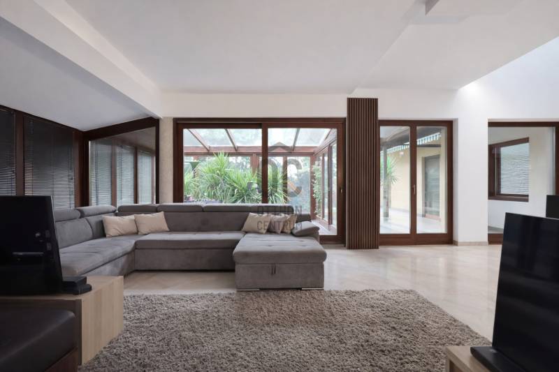 Fejér vármegye egyik legkedveltebb, zöldövezeti részén, Velencén kínálunk eladásra egy 375 m²-es, kiváló állapotú, kétgenerációs, két külön bejárattal és külön villanyórával rendelkező, sokoldalúan használható családi házat. A ház egy 882 m²-es, rendezett, igényesen kialakított telken helyezkedik el, ahol számos extra funkció biztosítja a kényelmet és a kikapcsolódást.Kialakítás és belső elrendezés:¤ 2 külön bejárat, külön villanyóra – kétgenerációs kialakítás¤ Összesen 7 szoba, több gyermekes családnak, otthoni vállalkozásnak vagy két generációnak is tökéletes¤ 4 szobához külön gardrób, és további tárolási lehetőségek¤ Tágas nappali kandallóval, mint hangulatos és praktikus fűtésalternatíva¤ 5 kényelmes fürdőszoba¤ 48,75 m²-es terasz¤ Földszinten télikert, ami egész évben használható pihenőtér¤ Külön irodahelyiség, amely utca felől önálló bejárattal is rendelkezik — ideális vállalkozás, rendelő vagy home office céljáraAlagsori wellness és sport részleg:¤ 65,3 m²-es jóga- / edzőterem¤ Külön fürdő és WC¤ Infra- és finn szauna – a teljes testi-lelki feltöltődésértMűszaki tartalom:¤ 2000-ben épült, PTH38-as falazat¤ Beton gerendás–beton béléstestes födém¤ 15 cm kőzetgyapot szigetelés¤ Zsindely fedés¤ 3 rétegű hőszigetelt üvegezésű fa nyílászárók¤ Ariston kombi gázkazán + hőtároló + napkollektor – energiatakarékos, korszerű megoldás¤ 3×32 A áram – ideális nagyobb gépekhez, műhelyhez, wellnesshez¤ Fúrt kút a gazdaságos vízellátáshoz¤ Klímaberendezés¤ 2 autó számára garázsUdvar és kültéri extrák: a gondozott udvar a pihenés és az aktív életmód tökéletes kombinációja¤ Nagy szaletli – családi rendezvényekhez, nyári grillezésekhez¤ Borospince – igényes kialakítás, borkedvelők álma¤ Saját szabadtéri kosárpálya – sportolási lehetőség a kertbenKörnyék:Nyugodt, biztonságos, zöldövezeti utca, ahol a családok számára ideális lakókörnyezet vár.A Velencei-tó közelsége számtalan sportolási és kikapcsolódási lehetőséget kínál – strand, vízi sportok, túrázás, kerékpározás.Megközelíthetőség:Az M7-es autópálya gyorsan elérhető, Budapest és Székesfehérvár irányába egyaránt kiváló a közlekedés.A tömegközlekedés is könnyen hozzáférhető, így az ingázás sem jelent kihívást.Ez az ingatlan nem egyszerűen egy ház — egy sokoldalú, minden igényt kielégítő, kétgenerációs élettér, ahol a wellness, a sport, a vállalkozás és a nyugodt családi élet egy helyen megvalósítható.#velence #eladóingatlan #kétgenerációsház #wellnessotthon #szaunásotthon #edzőterem #borospince #szaletli #kosárpálya #irodabejárattal #zöldövezet #tágastér #fejérvármegye #ingatlan2025 |