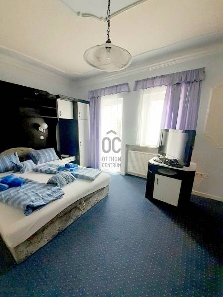 Kuriózumként kínálok megvételre Hévízen, egy 968 nm-es sík telken elhelyezkedő, 758 nm-es ingatlant. A meghirdetett családi ház, egész évben panzióként üzemeltethető. Az ingatlan 3 szint+ tetőtér, a szintek között liftakna is került kialakításra, így az is könnyen beépíthető lehet. Az épületben akár egészségügyi, szociális központ is kialakítható (pl. idősek otthona). Az földszinten található egy 100 nm-es privát lakás + a panzió vendégeinek fenntartott, külön bejárattal rendelkező előtér, reggeliztető, kiszolgálópult, és egy raktár.Az első és második szinten külön bejárattal, a vendégeknek fenntartott, összesen 36 fő befogadására alkalmas, panorámás erkéllyel rendelkező, 17 db szoba található. Minden szobához külön fürdőszoba tartozik.A tetőtér alkalmas wellness szolgáltatások kialakítására, az udvaron a vendégek számára külön parkolóhelyek vannak. A forgalomtól mentes, csendes utcában elhelyezkedő ingatlan a Nyugat-Balatoni régióban, gyógyfürdők közelében található, a településnek Európában egyedülálló, természetes tőzegmedrű meleg vizű tava is van, ami nem utolsó sorban gyógyító hatású.A turizmus egész évben virágzik, így jó befektetést jelenthet ez az alkalmi vétel.Jöjjön el, nézze meg, szeressen bele! Amennyiben a képek és a leírás alapján az ingatlan felkeltette az érdeklődését, keressen bizalommal a megadott elérhetőségeken, keresse az ingatlant a honlapunkon, ahol több kép is segíti Önt a választásban!Az ár irányár, tegyen rá ajánlatot! Irodánk teljes körű, díjmentes szolgáltatást nyújt kereső ügyfeleinknek, amennyiben Önnek hitelre van szüksége, segítünk! Szakszerű tanácsadással, hitel ügyintézéssel, energetikai tanúsítvány elkészítésével és kedvező díjszabású ügyvéddel nyújtunk segítséget! |