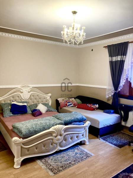 Két ingatlan egyben eladó, kimagaslóan jó elhelyezkedéssel!I. INGATLAN: 2 generációs újabb építésű, tégla, 190 négyzetméteres, két szintes családi ház, mely magában foglal 3 hatalmas hálószobát, 2 nappali-konyhát, és tágas tereket. Az otthon melegéről a gáz- és vegyestüzelésű kazán gondoskodik, így a modern kényelem és a hagyományos meleg találkozik. A földszinten találunk egy hatalmas, világos, szép burkolatokkal ellátott nappali-konyha-étkezőt, és egy nagy méretű hálószobát. A nappaliból masszív kényelmes lépcsőn jutunk fel az emeletre, ahol a világos, tágas nappali-konyha fogad minket. Innen nyílik két 20 nm-nél nagyobb hálószoba, a fürdőszoba, és külön a WC. II. INGATLAN: Egy 81 nm-es jól megépített, szerkezetileg kifogástalan állapotú Kádár-kocka ház, mely kiváló lehetőséget kínál az összeköltöző családoknak vagy az otthon és munka egyesítésére. A ház alatt száraz, nagy pince található, ahol a vegyestüzelésű kazán fűti mindkét ingatlant. A házban a felújítási munkálatok elkezdődtek, de így is lakható állapotú. Világos nagy szobákkal, és sok lehetőséget kínáló adottságokkal rendelkezik az ingatlan. Teremtse meg álmai otthonát és munkahelyét egyaránt!A két ingatlan, akár 3 lakássá is alakítható, hiszen minden meg van ahhoz, hogy kényelemesen külön de mégis egymás közelében élhessen a család.A házak egy könnyen karbantartható 525 nm-es területen fekszenek, közel buszmegálló, iskola, óvoda, éttermek, bolt. Jöjjön el, nézze meg, szeressen bele! Amennyiben a képek és a leírás alapján az ingatlan felkeltette az érdeklődését, keressen bizalommal a megadott elérhetőségeken, keresse az ingatlant a honlapunkon, több kép is segíti Önt a választásban!Irodánk teljes körű, díjmentes szolgáltatást nyújt kereső ügyfeleinknek, amennyiben Önnek hitelre van szüksége, segítünk! Szakszerű tanácsadással, hitel ügyintézéssel, energetikai tanúsítvány elkészítésével és kedvező díjszabású ügyvéddel nyújtunk segítséget! |