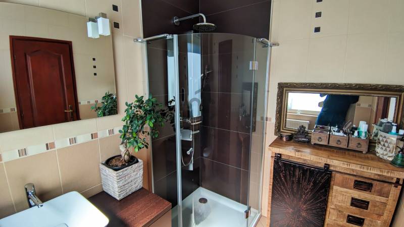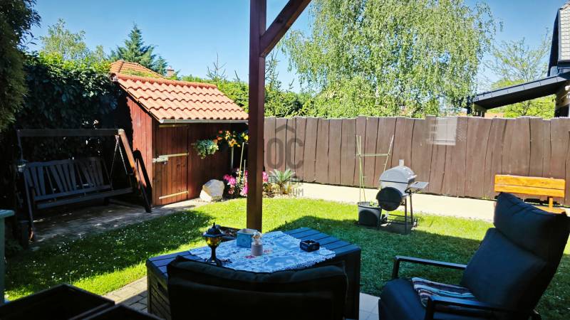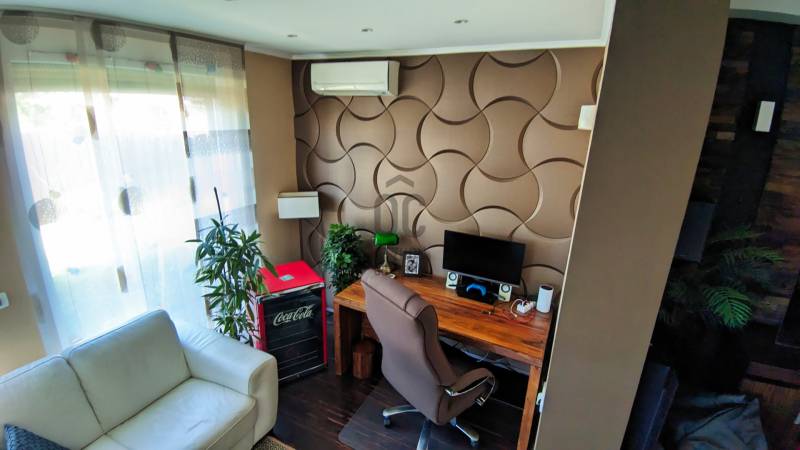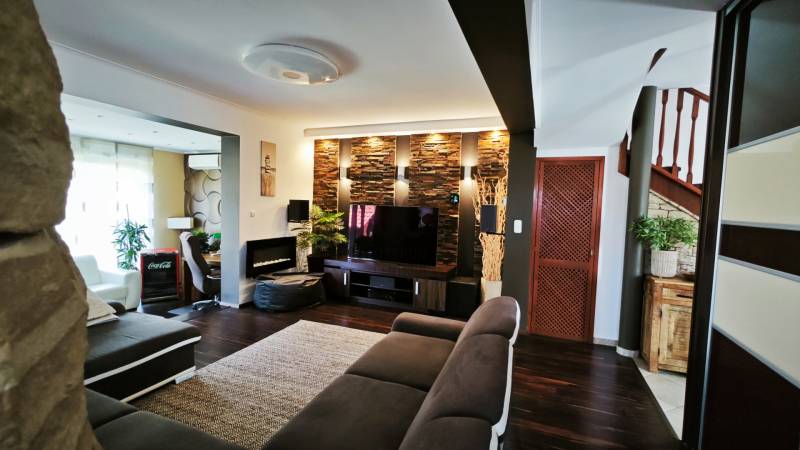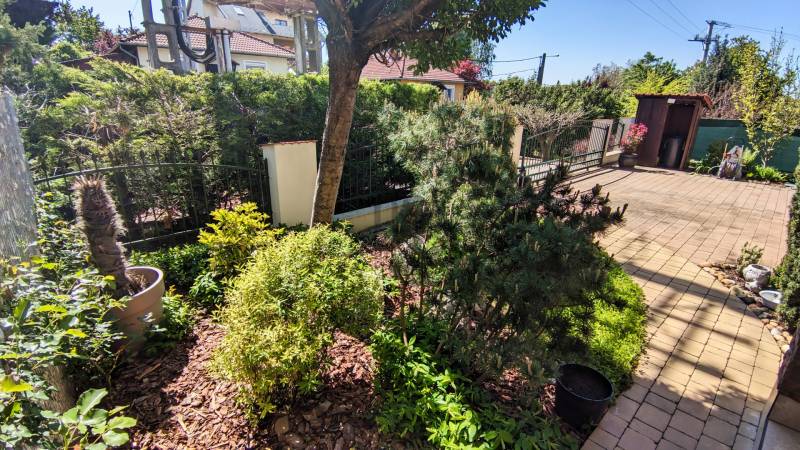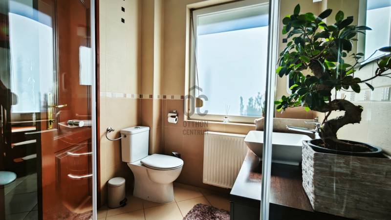 Eladásra kínálunk egy újszerű állapotban lévő, modern-mediterrán stílusú, szélső sorházi ingatlant Rákoshegy magasabban fekvő, csendes részén. A 2004-ben épült, téglaépítésű, 5 cm-es szigeteléssel ellátott ház folyamatosan karbantartott és minőségi anyagokkal felújított. A 142 m²-es lakótérhez rendezett, kerttervező által kialakított 320 m²-es kert tartozik.A világos, jól tagolt belső terekhez tartozik:Alsó szint: előtér, zuhanyzós fürdőszoba, gardrób, nappali, étkező, konyha, kamra, valamint egy padlófűtéses dolgozószoba teraszkapcsolattal (2012-es bővítés).Felső szint: 3 hálószoba, sarokkádas fürdőszoba bidével és WC-vel, külön gardrób.Műszaki jellemzők:VAILLANT kombi cirkó kazán + REFLEX indirekt tároló (időjáráskövető vezérléssel)Alsó szint: padlófűtés, felső szint: radiátorokKorszerűsített villamoshálózat3,5 kW Toshiba Daiseikai klíma, kiépített 5.1 audiorendszerKétkörös riasztó rendszer, elektromos alumínium redőnyök, LED világításExkluzív beépített szekrények edzett üveg tolóajtókkalKert és parkolás:Automata öntözőrendszer (jelenleg nem használatban), 4 m²-es faházElektromos tolókapu és gyalogos beléptető rendszer3 gépkocsi számára biztosított parkolóhely (1 utcai + 2 telken belül)A környék infrastrukturálisan kiválóan ellátott: iskolák, boltok, M0-ás, tömegközlekedés pár percen belül elérhető.Az ingatlan per- és tehermentes, 80%-ban bútorozottan eladó — azonnal költözhető. |
