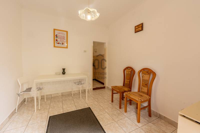 Úri községben került eladósorba az alábbi paraméterekkel rendelkező, karbantartott ingatlan!-1431 nm, összközműves, részben gyümölcsfákkal beültetett telekre épült - 82 nm lakóterületű, önálló ház, mely-1965. évben kapta meg jelenlegi formáját-falazata vegyes ( tégla- vályog), statikailag jó állapotú-cseréptetős, fafödémmel-jól karbantartott ingatlan, melyen az elmúlt pár évben felújítás/ korszerűsítés történt, újszerű a fürdő és a villanyvezetékek 3 éve lettek cserélve-fűtése konvektorokkal kivitelezett, melegvízellátása bojlerral megoldott-elosztása jelenleg 2 db nagy méretű ( 20.57nm, 16.41nm) szoba, étkező- nappali-konyha-fürdő, kamra, előszoba, veranda és számos tároló, jól alakítható épület amennyiben más elképzelése lenne-jelenleg autóval nem lehet beállni a telekre!-gyorsan birtokbavehetőA környék csendes, széles aszfaltos utcában helyezkedik el. A buszmegálló cirka 7 perc sétával elérhető. Óvoda- bölcsőde, művelődésiház, bevásárlási lehetőség szintén séta távolságra találhatóak.Jó szívvel ajánlom a nagy kertet igénylő, nyugalomra vágyó pároknak, akik szívesen alakítják saját ízlésükre.Ez a hirdetés az Otthon Centrum Felező portfóliójának része, melyről bővebb információt a http://www.oc.hu/felezocsomag oldalon talál.Ez az ingatlan a \"Felező csomag\" megbízási portfólióhoz tartozik. Részletek az Otthon Centrum weboldalán. |
