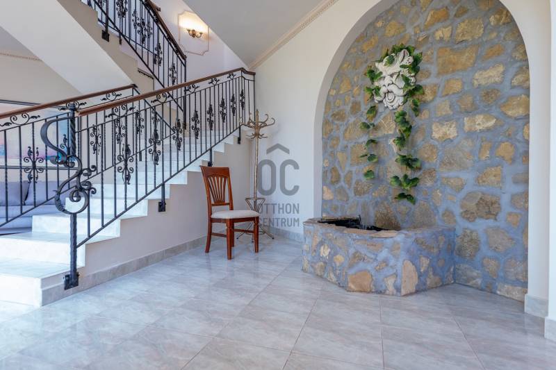 ÖRÖK PANORÁMÁS, ENERGIATAKARÉKOS LUXUS VILLA BIATORBÁGYON – 340 NM, KASTÉLYJELLEGŰ MEGJELENÉSSELBudapesttől mindössze 14 km-re, Biatorbágy egyik csendes, elegáns mellékutcájában kínálunk megvételre egy különleges, háromszintes, 400 nm-es villaépületet, amely örök panorámával, kiemelkedően alacsony rezsiköltséggel és sokoldalú hasznosítási lehetőségekkel rendelkezik.FENNTARTHATÓ LUXUS – AKÁR NULLA FORINTOS FŰTÉSSZÁMLAA villa energiahatékony működését egy 18 kW teljesítményű, 22 optimalizálóval felszerelt napelemrendszer, valamint svéd Energy Save hőszivattyúk (13 kW és 11 kW) biztosítják.Ennek köszönhetően az ingatlan rezsiköltsége extrém alacsony, az áramköltség gyakorlatilag nullára csökkenthető.További műszaki előnyök:20 cm üveggyapot tetőszigetelésBramac tetőcserépKorszerű rézvezetékelés (teljes felújítás: 2006)5 db klíma (ebből 3 LG hűtő-fűtő klíma a felső szinten)automata Hunter öntözőrendszerszakszerűen kiépített szikkasztórendszer (2018)belső terek friss festése (2024)RUGALMAS TÉRKIALAKÍTÁS – MAGÁNCÉLRA ÉS VÁLLALKOZÁSRA IS IDEÁLISAz ingatlan kiválóan alkalmas:exkluzív magánrezidenciánaknagycsaládosoknak, akár két külön lakrésszelrendelőnek, bentlakásos intézménynekcégközpontnak vagy irodai funkcióraA háromszintes épülethez 900 nm-es, örökzöldekkel parkosított kert tartozik.A főbejárat a középső szintre vezet, míg az alsó szint külön bejáratról is megközelíthető, ami tovább növeli a hasznosíthatóságot.HELYISÉGKIOSZTÁS3 nappali6 külön bejáratú szoba2 teljesen felszerelt, gépesített konyha3 fürdőszoba4 WC (bidé, piszoár)dolgozószobaháztartási helyiségkazánház70 nm-es márvány teraszgarázs + kültéri parkolókPRÉMIUM EXTRÁK ÉS ELEGÁNS RÉSZLETEKkovácsoltvas korlátokstukkók, boltívekhidromasszázs sarokkád, zuhanykabinantik tükrökriasztórendszerszökőkútautomata, fűthető garázszárt beálló 2–3 autó számáratérkövezett udvari parkoló további 3 autónakKERT ÉS ÉLETTÉR – PANORÁMA A BIAI-TÓRAA 70 nm-es terasz és a dúsan zöldellő, intim kert tökéletes helyszínt biztosít pihenéshez, családi és baráti összejövetelekhez.A Biai-tó lenyűgöző látványa a mindennapok része, miközben a környezet maximális nyugalmat és privát életteret nyújt.LOKÁCIÓ – NYUGALOM ÉS KIVÁLÓ INFRASTRUKTÚRABudapest gyorsan elérhető az M1/M7 autópályákonLovaglási lehetőségek Sóskúton és Etyekenwellness és úszási lehetőség Herceghalmonegész éves borkóstolási programok Etyeken |