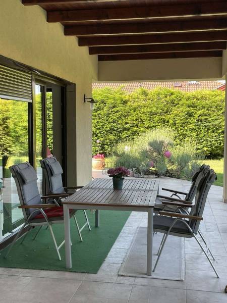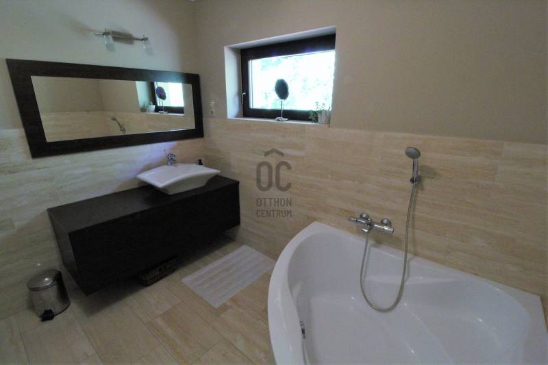 Luxus, alacsony fentartási költséggelKellemes, tágas élettér, átlagon felüli minőségű anyagok (Travertin mészkő burkolat) és kivitelezés jellemzi ezt az összesen 300 nm alapterületű, 6 hálószobás és három fürdőszobás, két szintes, újszerű állapotú családi házat.Az ingatlanban Junkers gázkazán és 500 literes melegvíz tároló biztosítja a meleget, radiátoros és padlófűtéses hőleadással.A kert automata öntözővel ellátott, mely fúrt kútról működik.Jöjjön el és nézze meg. |