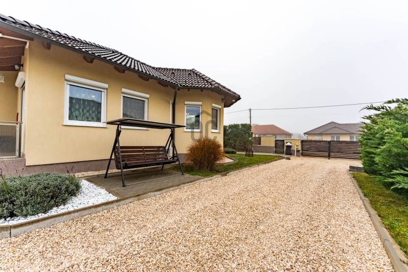 Az ingatlanról videót is készítettünk, tekintse meg weboldalunkon, a H511254 regisztrációs számra keresve!A Média Építészeti Díjat nyert Ubrankovics technológiával készült falazat könnyűszerkezetes, készház osztrák minőség, mely számos előnnyel rendelkezik:-kiemelkedő hő- és hangszigetelés, így rendkívül kedvező rezsiköltséggel működtethető,-a külső és belső falakban nagy térfogatsűrűségű (50–60 kg/m³) farostszigetelés található,-rétegrend: 5,5 mm Baumit vakolat + 60 mm vakolható farostszigetelés + 160 mm KVH fa tartóváz + 160 mm cellulóz szigetelés + 15 mm építőlemez + 40 mm belső lécváz + 12,5 mm gipszkarton,-valamint kiváló tűzvédelemmel is rendelkezik.Az ingatlan főbb jellemzői:-3 rétegű műanyag ablakok, redőnnyel és szúnyoghálóval felszerelve,-fűtés gázkazánról működik – a közlekedőben, fürdőszobában, WC-ben padlófűtés, a többi helyiségben radiátoros hőleadás,-helyiségek: 3 hálószoba, nappali, tágas konyha–étkező, WC-kézmosó, fürdőszoba,-a nappaliból közvetlen kijárat nyílik a teraszra,-az udvaron dupla beállásos garázs és egy tágas tároló is megtalálható,-nagy, sík telek – medence, játszótér vagy kerti pihenő könnyedén kialakítható,-kiváló elosztású, praktikus és élhető otthon, ideális választás családosok számára.A fa természetesn, megújuló alapanyag, amely megköti és tárolja a CO2-t, csökkentve az építés ökológiai lábnyomát, kiegyensúlyozott, egészséges beltéri klímát teremt, csendesebb, nyugodtabb életteret biztosít, gyorsan, pontosan, hulladékmentesen építhető. Egy ilyen épületben könnyebb a levegő, jobb a közérzet és a fa természetes harmóniája határozza meg a mindennapokat.Elhelyezkedés:Márkó mindössze 5 perc autóútra van Veszprémtől. A településen megtalálható óvoda, étterem, kisboltok, posta, gyógyszertár és orvosi rendelő – minden adott a kényelmes mindennapokhoz.Bővebb információkért és megtekintésért, keressen bizalommal!BANKFÜGGETLEN hitelben és teljes körű ügyintézésben segítünk! |