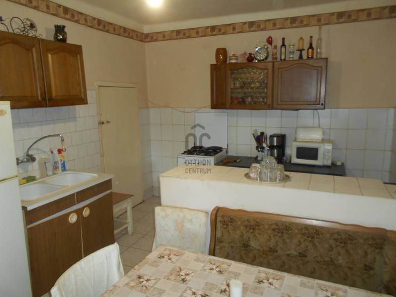 Megvételre kínálok Szabolcsveresmarton, főutcán, egy 1950 -ben vályogból épült, cserepes lemezzel néhány éve átfedett családi házat 1419 nm -es, 21 méter széles telken. A felújítandó ingatlan két szobáját hajópadlóval, illetve laminált padlóval, a konyha-étkezőt, valamint a zuhanykabinos wc-fürdőszobát járólappal burkolták. A nyílászárók fából készültek, az ablakokat redőnnyel szerelték fel, a melegről két cserépkályha gondoskodik, de a gázcsonk már a telken belül található. Az épületet pár évvel ezelőtt bővítették egy szilikátból épült 14.4 nm -es kamra-tárolóval, ami akár lakószobának is átalakítható, így az épület akár a falusi CSOK -ra is alkalmassá tehető. A vételár tartalmazza a bútorzat nagy részét is.Szabolcsveresmart eladó családi házAz ingatlanról készült videó megtekinthető: http://youtu.be/GA8mMUDcqK0 |