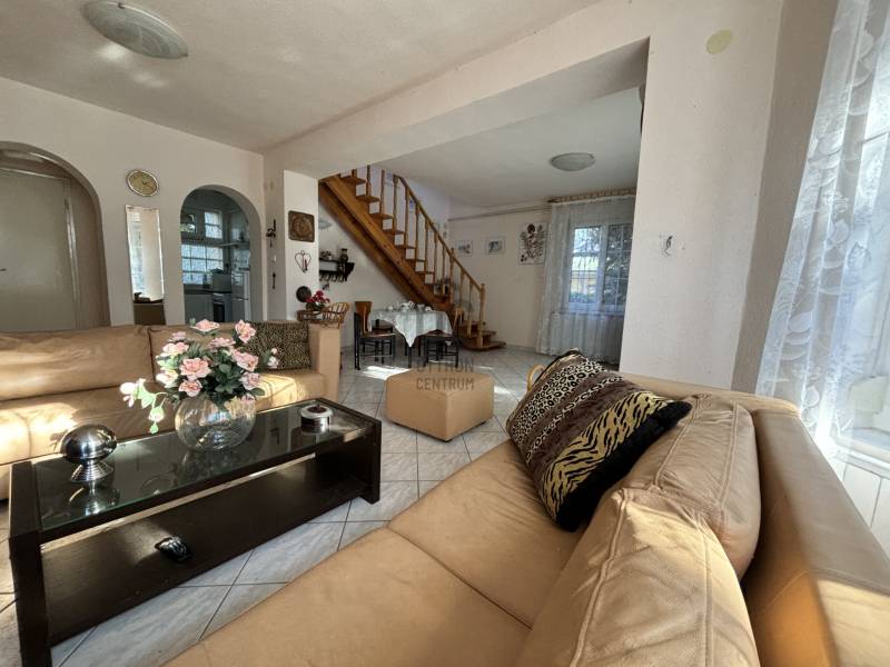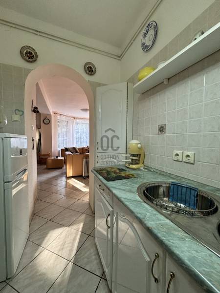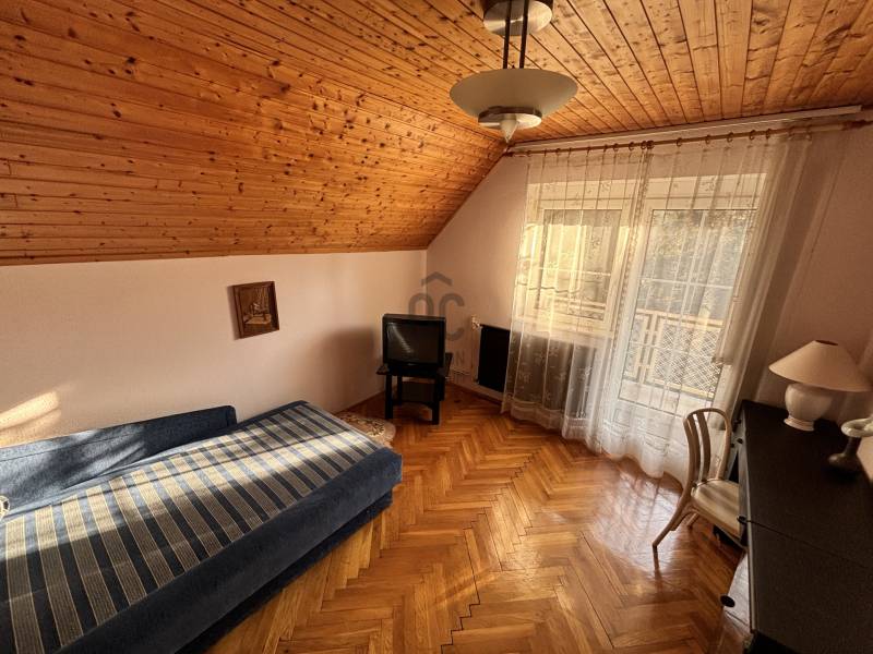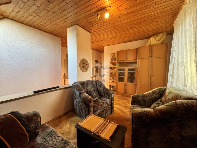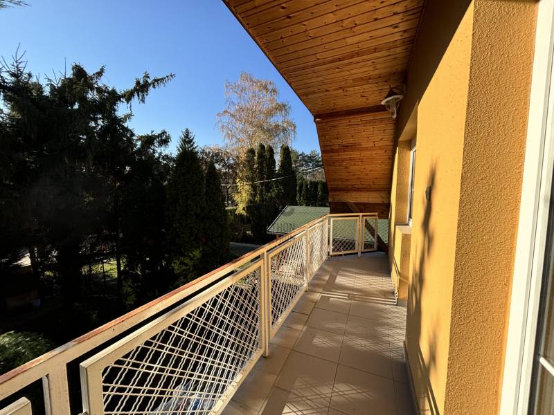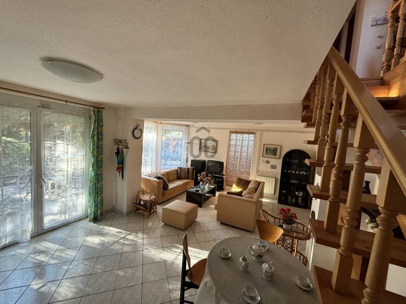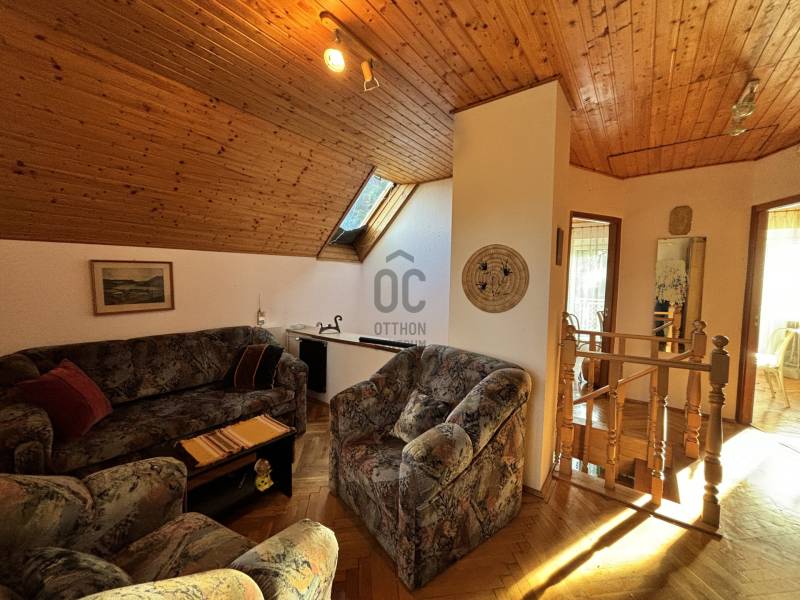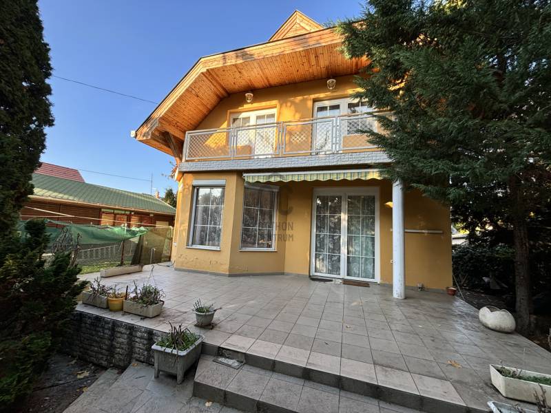 Göd az északi agglomeráció ékköve, a Dunakanyar kapuja, egy tüneményes kertváros Budapesttől mindössze 20 perces autóútra.Zöld környezetével, jó nevű iskoláival, remek közlekedésével méltán vált a kiköltöző családok dobogós választásává.Itt, a város dunai oldalán, kiválóan ellátott helyen került eladósorba egy zöldbe burkolódzó, napfényes, jó állapotú, nappali + 2 hálós, két fürdőszobás házikó nagy terasszal, erkéllyel!Az ingatlan a 2000-es évek elején az akkori műszaki színvonalnak megfelelően szigetelt sávalapra tégla falazattal, vasbeton födémmel, fa gerendázattal, cserép fedéssel épült. A külső kőporos falazat szigeteletlen. Az ablakok kétrétegű, szigetelt, műanyag nyílászárók, az emelet tetőtéri beépítése szigetelt. Fűtése gáz cirkó készülékkel és radiátor hőleadókkal megoldott.Telek nagysága 360nm. A kert gondozott ahová a kerti kapun kívül, nagyméretű csúszókapun keresztül lehet bejutni.A ház két szintes, ahol az alsó szint a nappalival egy légtérben lévő étkezőt, szeparált konyhát, fürdőszobát, külön mellékhelyiséget és az emeletre vezető lépcsőfeljárót tartalmazza. A nappaliból továbbá egy közel 30nm nagyságú részben fedett teraszra juthatunk. Az emelet kényelmes méretű közlekedőt, két, erkéllyel rendelkező hálószobát, egy nagyméretű fürdőszobát és egy társalkodó részt is tartalmaz mely az eredeti tervek szerint szintén szeparált szoba funkciót látott el. Ez könnyen visszaállítható. Az emeleti folyosóról a ház teljes alapterületével megegyező nagyságú padlás is megközelíthető. A kertben fúrt kút és a ház riasztóberendezésével összeköttetésben álló szerszámos kamra is található. Igazán jó választás lehet mindazoknak akik nyugodt környezetet, természetközelséget és kényelmes életteret keresnek maguknak! |