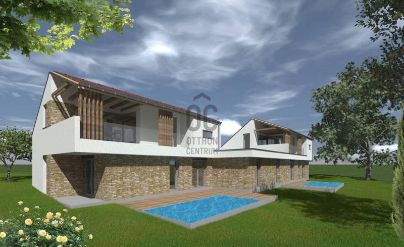 Balatonfüred csendes utcájában kínáljuk megvételre ezt az új ikerházat, amely kétszintes, és a felső szintről csodás panorámát kap új tulajdonosa.A házakhoz garázs is épül, és hogy ne zavarják egymás kényelmét és nyugalmát, az ikerház közé lettek tervezve.Mivel a panorámája az ingatlanoknak az emeleti részről kiváló, így az egy légterű konyha, nappali és étkező, valamint a fedett terasz is itt került kialakításra, hogy Ön és családja a panorámát a nap minden szakában láthassa.A fsz-en került kialakításra három szoba, és ehhez is nagy terasz tartozik. sőt a kertkapcsolatos udvaron még medence is helyet kap.A lakások hűtését, fűtését energiatakarékos, modern levegő-víz hőszivattyú biztosítja.A házakat kivitelező minőségi anyagokból építi, és ha Ön most foglalja még bármelyik lakást is, úgy előnyt élvez, hiszem még a burkolatok kiválasztásánál az Ön igényének megfelelően tud kivitelező alkalmazkodni.Nos? Azt gondolom, hogy kiváló ingatlant, kiváló áron ajánlok Önnek és családjának, ha még ma felhív!Várom megtisztelő hívását! |