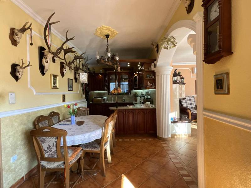 Érd központjában kínáljuk eladásra ezt a nagy és igényes családi házat, amely egy 1906 m2-es telken épült.A telek maga máris sok lehetőséget kínál arra, hogy befektetők, fejlesztők elgondolkodjanak arról, hogy megvásárolják, hiszen a terület nagysága további lehetőségeket rejt, akár több ingatlan építhető rá.A kétszintes ház 2008-ban épült, kiváló elosztású és valójában lehetőséget kínál további ingatlanok építésére is a HÉSZ-szerint.A terület besorolása Lk-4, 1500 m2 telekterületig legfeljebb 4 db lakóegység, 1500 m2 telekterület felett a teleknagyság 150-el történő osztásából a felfelé kerekítés szabályai szerint lehet beépíteni, így tehát ez egy kiváló lehetőség most befektetők számára.A házban 5 szoba, 2 nappalik, étkező+konyha, fürdőszoba, wc-k, és nagy terasz található. Épült még tovább hozzá garázs, tároló, de a kertben egy kemence, és nyári konyha is található, így akár nagycsaláddal bírók is kiváló partikat tarthatnak a kertben. Egyszóval, akár két generáció is elfér itt, ezért gondolja meg, és biztosan nem fogja megbánni. A konyha egyedi fa, teljesen gépesített, indukciós főzőlappal ellátott, energiatakarékos mosogatógéppel felszerelt, mely ez évben lett beszerelve.Fűtése padlófűtéses, kandallóval biztosított, valamint egy inverteres kazánnal fűthető, továbbá hűtő-fűtő klíma is adott. Egyszóval ez egy energiatakarékos ház.Elmondhatjuk, hogy minden kényelmi szempontot megtalál ebben a házban, ha elnyerte tetszését.A telek rendezett, gyümölcsfákkal beültetett, szép és rendezett.A környék jó közlekedésű, vasút, autóbusz, orvos, városközpont 5 percre, de ha a Déli pályaudvarra szeretne bejutni, 20 perc alatt beér.Nos?Úgy gondolom, hogy minden igényt kielégítő ez a nagy családi ház és a hozzá tartozó nagy telek.Érdemes elgondolkodni rajta, hiszen befektetés céljából Önnek csak nyereséget hoz.Kérem, gondolja át, és ha elnyerte tetszését egyeztessünk, és a megbeszélt időpontban mutatom is!Várom hívását! |