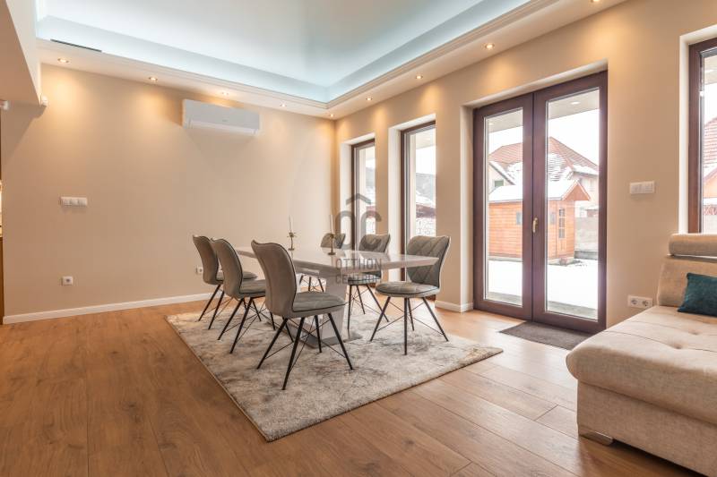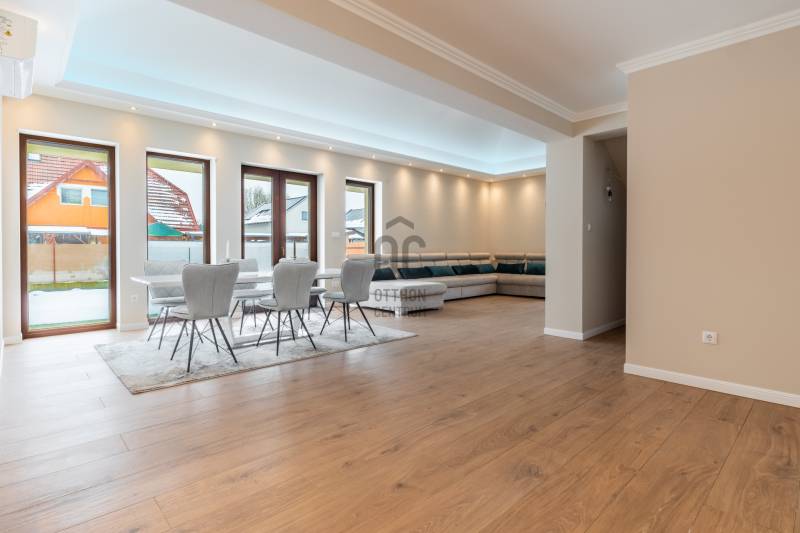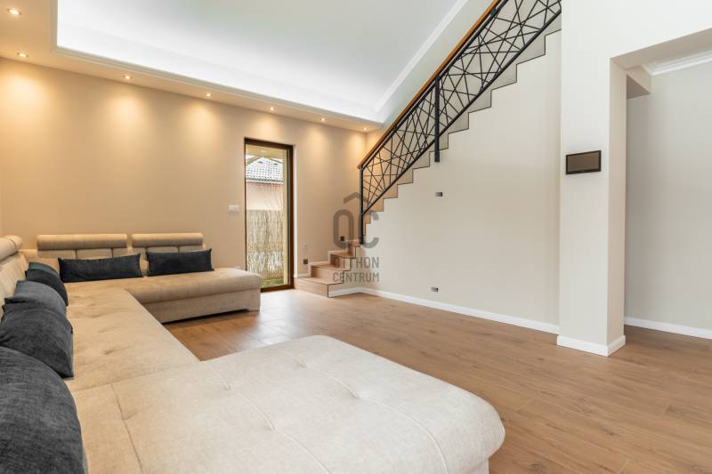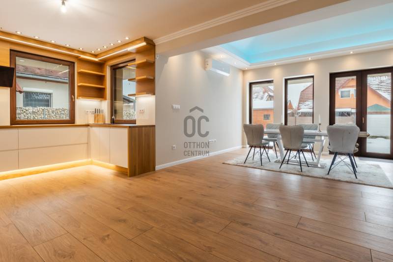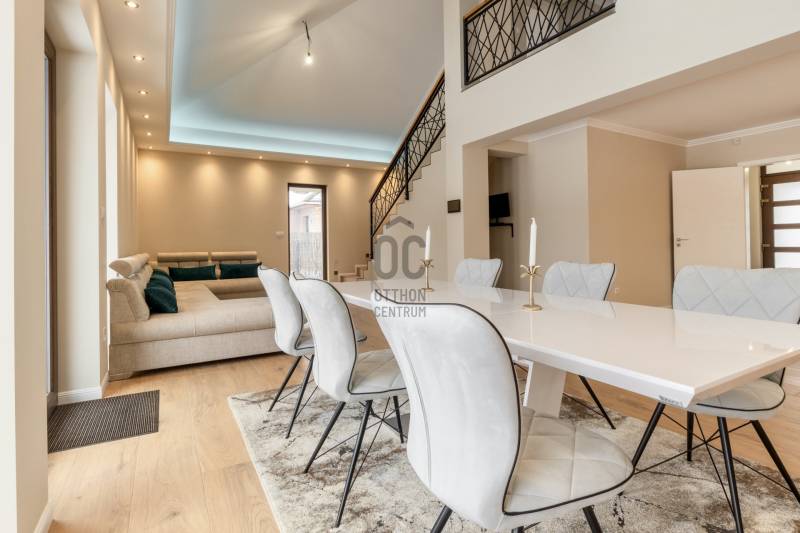 Új tulajdonosát keresi Üllő közkedvelt Sportliget lakóparkjában egy 2025-ben épült, tégla falazatú családi ház, mely teljes berendezéssel, azonnal költözhető állapotban várja új lakóit!Amennyiben egy modern, energiatakarékos otthont keres családja számára egy nyugodt, kertvárosias környéken Budapest vonzáskörzetében, akkor jó helyen jár!KÖRNYÉK és KÖZLEKEDÉS:✅ Üllő, Sportliget lakópark, Pest megye dinamikusan fejlődő, kedvelt kertvárosi része, kiváló infrastruktúrával.✅ Számos szolgáltatás a közelben: pizzériák, szépségszalonok, kisboltok, óvoda és bölcsőde egyaránt megtalálhatók a környéken.✅ Bevásárlási lehetőségek (Penny, Aldi, Tesco) pár percre elérhetők, így a mindennapi vásárlás gyors és kényelmes.✅ Kiváló a közlekedés, Budapest autóval és távolsági busszal is könnyen megközelíthető, a vasúti közlekedés folyamatosan fejlődik.ÉPÜLET és TELEK:➡️ 2025-ben épült, két szintes, bruttó 198 m2-es (nettó 164 m2-es), igényes családi ház, ➡️ Az ingatlan okos téglából épült, 20 cm-es homlokzati szigeteléssel, modern gépészettel és esztétikus, elegáns megjelenéssel.➡️ Korszerű és energiatakarékos kialakítású, B energetikai besorolás garantálja a kedvező fenntartási költségeket.➡️ A ház fűtését kondenzációs gázkazán biztosítja padlófűtéses hőleadással és prémium inverteres klímák biztosítják a hűtést.➡️ Prémium minőségű, háromrétegű üvegezésű, egyedileg gyártott, dió színű műanyag nyílászárók gondoskodnak a kiváló hő- és hangszigetelésről. ➡️ A földszinti 59,75 m2-es amerikai konyhás nappali-étkező tágas életteret biztosít, nagyméretű nyílászáróinak köszönhetően világos. ➡️ Innen közvetlen kapcsolat nyílik a 15 m2-es teraszra és a kertbe.➡️ A parkosított kertben található egy fűthető, 6 m2-es faház.➡️ A kert mérete, akár egy medence kialakítására is lehetőséget nyújt.➡️ Kiépített riasztórendszer és Hikvision okos kaputelefon garantálja a biztonságot.➡️ Az ingatlanhoz tartozik egy ipari burkolattal és polcrendszerrel ellátott duplabeállós garázs is, amely a vételár részét képezi.FÖLDSZINT:✅ A földszinten helyezkedik el a hatalmas, minőségi beépített bútorokkal felszerelt amerikai konyhás nappali és étkező.✅ Az egyedileg tervezett modern konyhabútor gépesített és a vételár részét képezi.✅ A nappali részben galériás kialakítású, dupla belmagasságával lenyűgöző térérzetet nyújt✅ A nyitott galéria elegáns átmenetet teremt a földszint és az emelet között.✅ Ezen a szinten található egy zuhanyzós fürdőszoba WC-vel.EMELET:➡️ Az emeleten három külön nyíló hálószoba található, mindegyik csendes és kényelmes.➡️ Két szobából közvetlenül elérhető a ~7 m2-es erkély.➡️ Ezen a szinten kapott helyet egy második, kádas fürdőszoba WC-vel.AZ INGATLAN MEGTEKINTHETŐ:✅ Személyesen✅ Online, személyes bejelentkezésselFINANSZÍROZÁSI KÉRDÉSEKBEN DÍJMENTESEN SEGÍTÜNK:➡️ Bank-független hitelcenterünk díjmentesen versenyezteti minden bank és hitelintézet ajánlatát.➡️ Önnek nincs más dolga, mint beszélgetni munkatársunkkal, majd a megversenyeztetett ajánlatokból kiválasztani a hosszútávon is a legmegfelelőbb konstrukciót.➡️ Szakértőink 20 éves szakmai tapasztalattal és egyedi igényekre szabott, fogyasztóbarát lakáshitelekkel, babaváró hitellel, teljes körű CSOK PLUSZ és OTTHON START PROGRAM ügyintézéssel várják Önt.➡️ Előre egyeztetve akár a normál munkaidő után is.☎️ Kérdéseire szívesen válaszolok, hívjon bizalommal! |