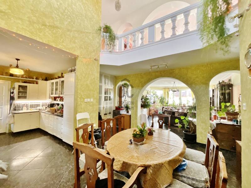 Telek 792 m²-es. Elfér egy épített medence is, és teherautó is elfér.A ház: alapterülete: 150 m²3 szinten: Pincében: garázs, tárolók, kialakított kis lakószobák fürdővel és konyha résszel, külön bejáratokkal.Fölszinten: hatalmas nappali, étkező, konyha, és 2 nagyobb hálószoba, fürdőszoba, wc, és egy hatalmas fedett terasz kaptak helyet.Emeleten: 4 nagyobb szoba, erkély, fürdő, wc.Összesen: 392 m²Fűtése gázkazánnal vagy vegyes tüzelésűvel.Ablakok, ajtók cserélve.Hatalmas terek és rengeteg tároló, 2 garázs, a kertben teherautó is elfér. |