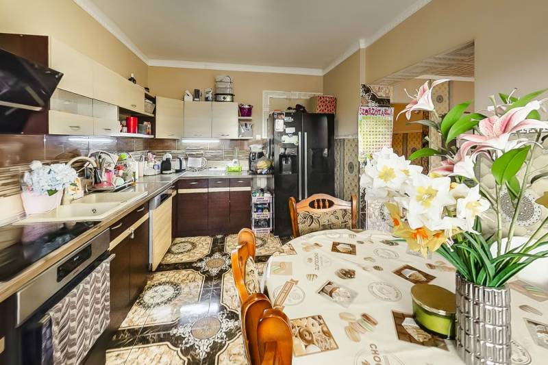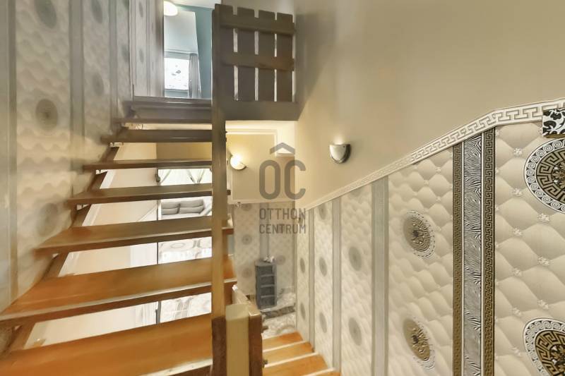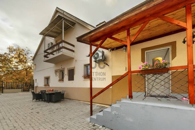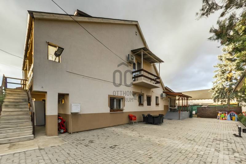 Dunakeszi központjának egy csendes mellékutcájában eladóvá vált egy 2 nappalis, 2 konyhás, 6 hálószobás, 4 fürdőszobás családi ház, ami egy 543 nm-es telken helyezkedik el. Az épület összesen 227 nm, tartozik hozzá egy 4 nm-es erkély, egy 11 nm-es loggia és egy 6 nm-es fedett terasz is. A házban 1 autó tárolására alkalmas garázs van, a részben térkövezett udvaron pedig további 3-4 gépkocsi számára elegendő terület található. A háznak 2 külön bejárata van és bár jelenleg a 2 lakrész nincs elválasztva egymástól, de csekély anyagi ráfordítással megoldható a teljes elszeparálás.Az ingatlanban az elmúlt 10 évben fokozatosan történt meg a felújítás, az új gázcirkó kazán mellett vegyes tüzelésű kazán is rendelkezésre áll. A körbe járható épület szigetelt, villamos hálózata felújított. A nyári melegben klíma gondoskodik a kellemes hőmérsékletről.A központi elhelyezkedésnek köszönhetően közel vannak a közintézmények, üzletek, benzinkút, vasútállomás stb.Irányár: 157 M Ft. |