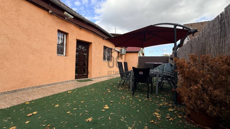 Otthonos családi fészek privát kerttel Soroksár egyik csendes utcájában.Ez a rendkívül jó elosztású ingatlan ideális választás családoknak vagy akár befektetőknek is, hiszen a külön nyíló helyiségek lehetővé teszik a kényelmes együttélést.Fűtés kombi cirko gázkazánnal megoldott radiátorokkal, azonban a kővel burkolt szobában a melegről padlófűtés gondoskodik, a házban a további kényelem miatt két komplett fürdőszoba is kialakításra került. A szobákban a legtöbb ablakon reluxa is van.A konyhában külön víztisztító rendszer is kialakításra került.2010-ben cserélték a vízvezetéket, a nyílászárókat és a kazánt Saunier Duval gázkazánra, 2018-ban a ház újabb felújításon esett át, ekkor kicserélték a villanyvezetéket, és megújították a belső kialakítást, burkolatokat, bútorzatot is.A ház falazata vegyes tégla és vályog, kívülről a ház a szellőzés érdekében kőzetgyapot szigetelést kapott, a födém pedig fa gerendás, üveggyapot szigeteléssel.A kert önálló, saját használatú, külön kerítés választja el a szomszéd házaktól, így senki nem megy át rajta!A biztonságról és a kényelmes bejutásról elektromos kapu gondoskodik.Pár perces sétával megközelíthető a tömegközlekedés illetve a közeli Hősök terén bevásárlási lehetőségek, óvoda és iskola is megtalálható.#Budapest #23. kerület #Soroksár #eladó #sorház #tégla #vegyesfalazat #4 szoba #felújított #2 klíma |
