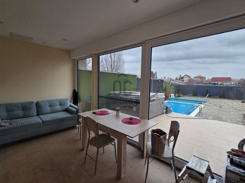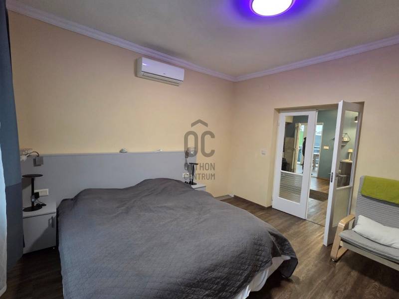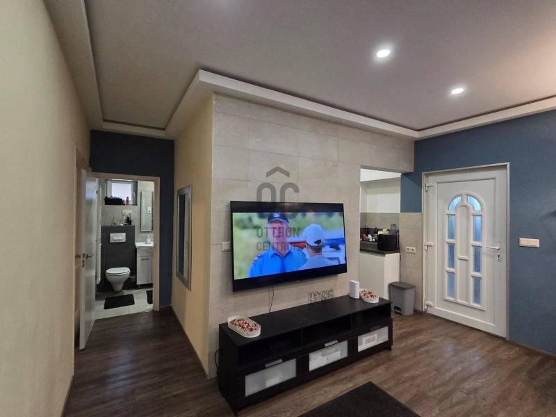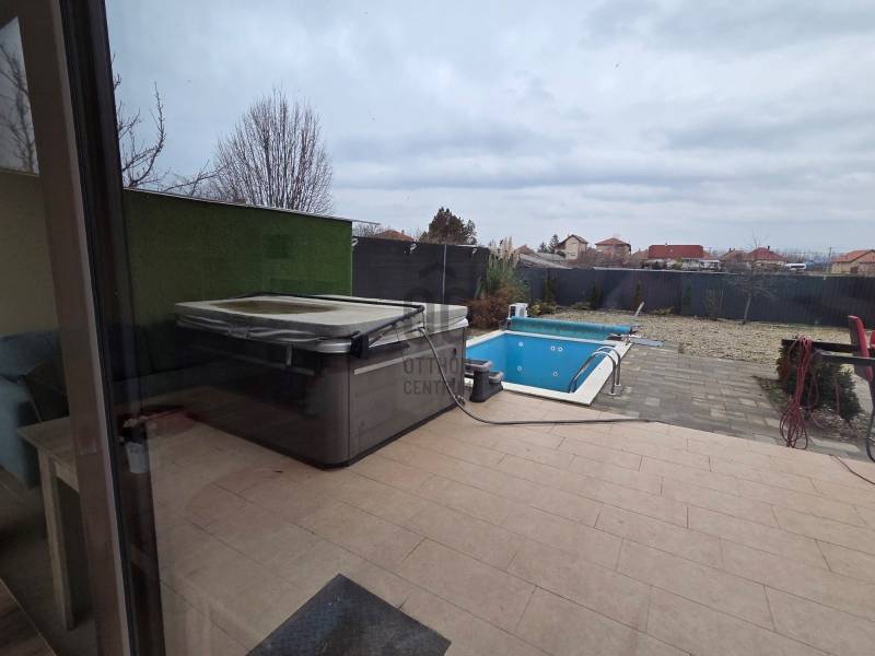 Újhartyán csendes utcájában, mégis központi helyen vált eladóvá ez a szépen felújított ingatlan. Az eredeti kádár kocka néhány éve teljesen megújult.Új nyílászárókat kapott, melyek szúnyoghálóval és redőnnyel ellátottak ( ezek egy része elektromos ) Teljes belső átépítéssel, beépített gépekkel kialakított modern konyha készült.A tágas nappali mellett 2 külön nyíló hálószoba is van.A kert mérete bőven elbírja, hogy a hátsó felében 32 db napelem lett felállítva ezzel a rezsi költséget jóformán nullára redukálva .A fűtésről- hűtésről modern klímák gondoskodnak, míg a teljes vízbekötés vízlágyítórendszert kapott.A ház téglából és szilikátból épült, kívülről szigetelt és új a tetőszerkezet is. Az ingatlan kamerarendszerrel ellátott.A kertben van egy medence illetve egy állandóan használható jacuzzi is.A tulajdonos az autó kényeméről sem feledkezett meg, a 30 m2-es garázst Hörmann garázskapu nyitja.Az M5 autópálya csak néhány percre található, ahonnan Budapest 20-25 perc alatt elérhető |