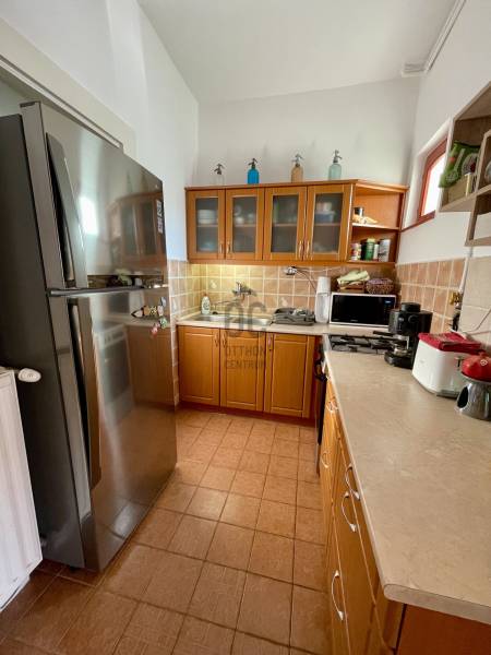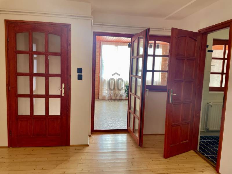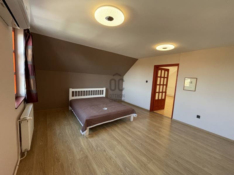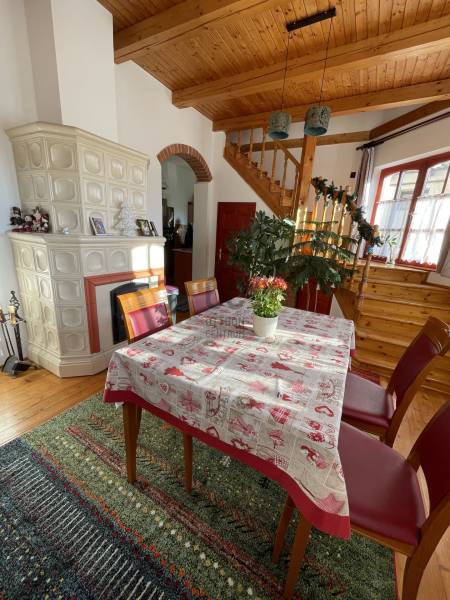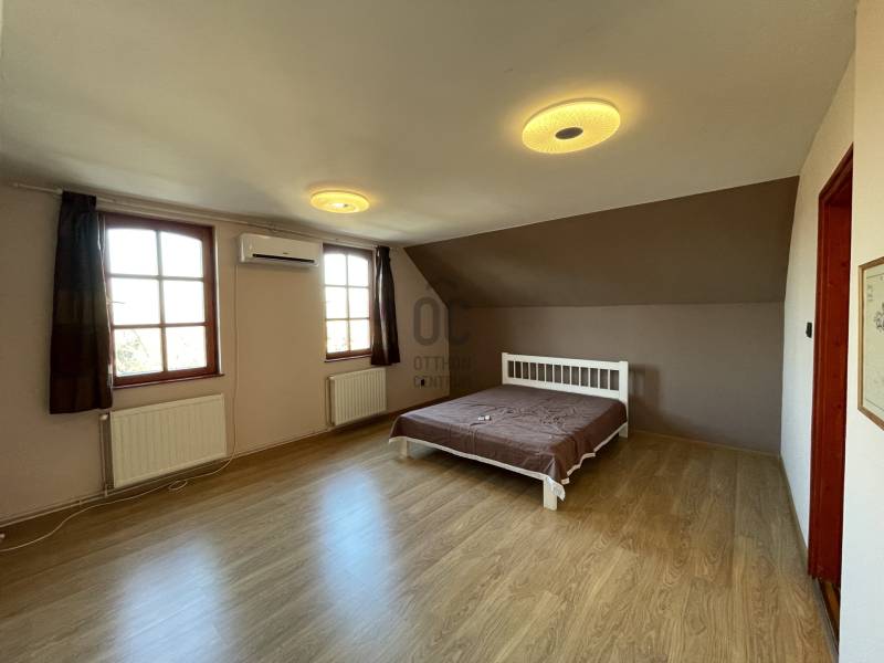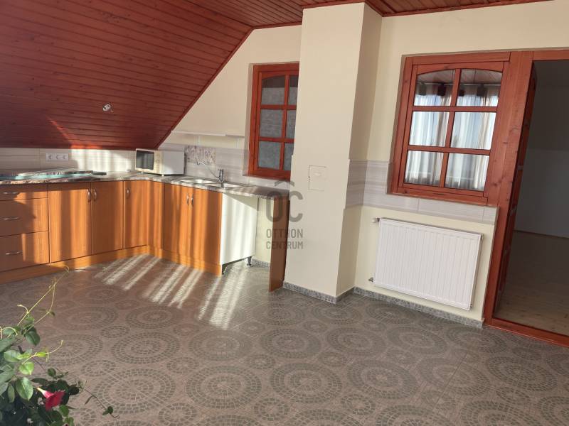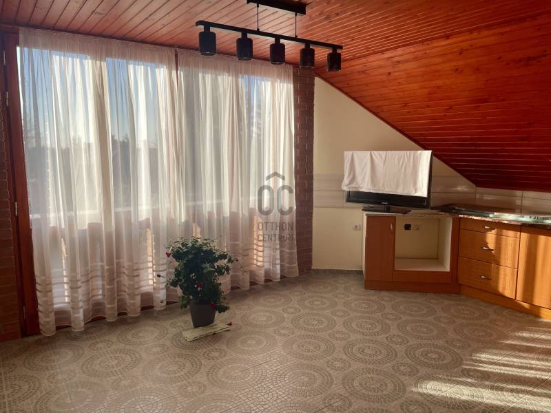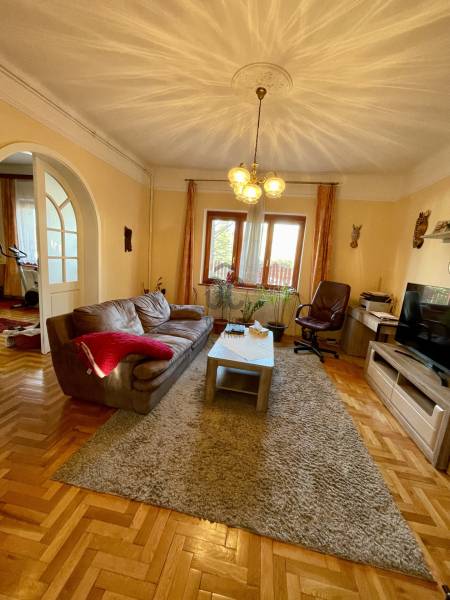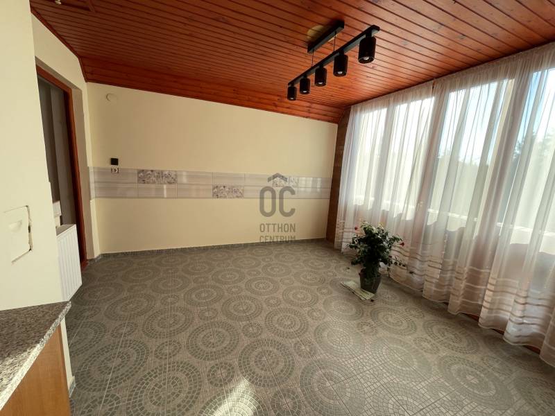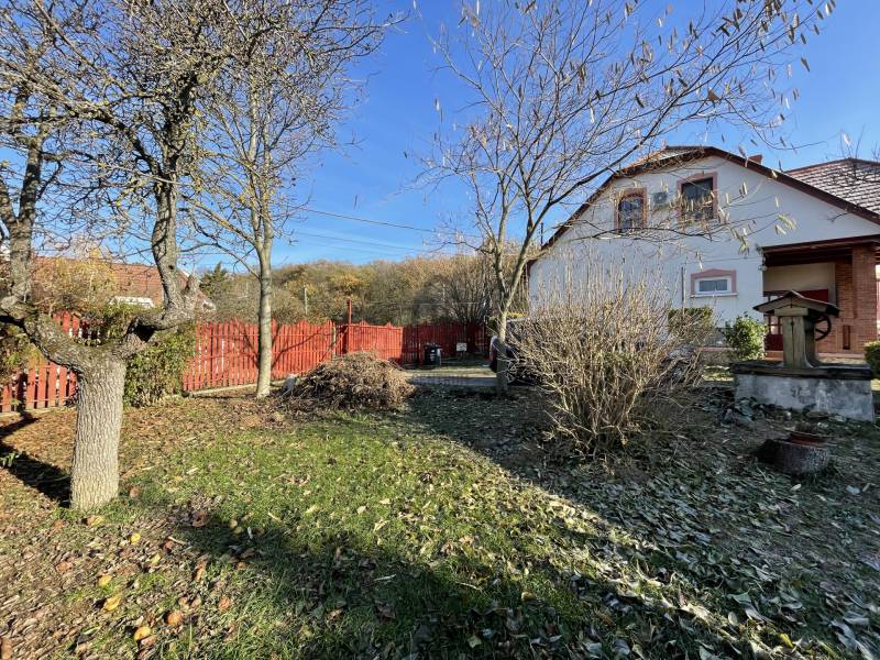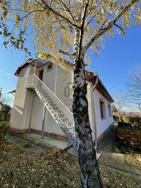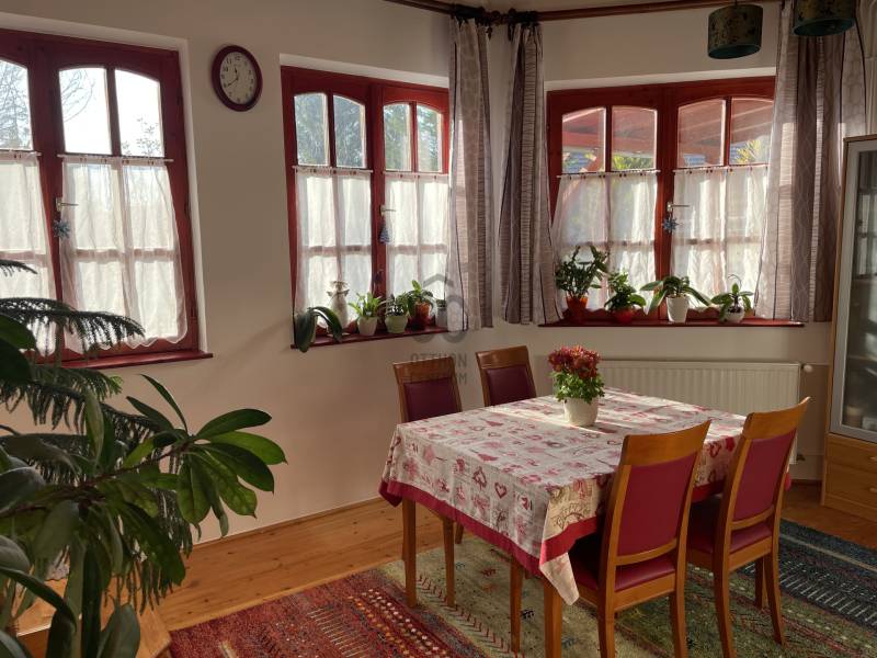 Erdő szélén eladó ez a hangulatos, gondos kezek által karbantartott, 2 szintes családi ház. Az alsó, régebben épült szinten nappali, szoba, étkező, konyha, fürdőszoba, WC lett kialakítva. Az étkező éke egy fatüzeléses kandalló. Az egész házat beragyogja a napfény, világos, szép fekvésű, zöldre néző panorámás. Az étkezőből falépcső vezet fel a felső szintre, melyben egy külön lakrész lett kialakítva. Ez a szint igény szerint teljesen szeparálható, mivel egy külső lépcsőn is megközelíthető. Itt egy hatalmas konyha-étkező, egy fürdőszoba, egy tágas hálószoba és egy nagy nappali található. A felső szint modernebb kialakítású, tágasabb. A kertbe elektromos kertkapun keresztül jutunk be, ahol 4 autó kint, egy pedig egy helyes garázs-tároló épületbe tud beállni. A szépen gondozott, sík kertben kút, gyümölcsfák, fedett terasz mind megtalálhatók. Csend, béke, természet, mégis jó közlekedés mellett... aki ezt az otthont választja garantáltan boldog lesz itt! . |