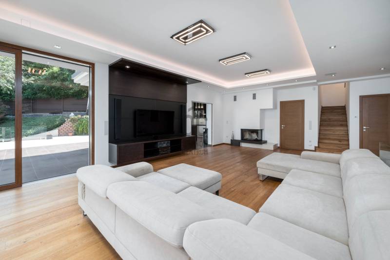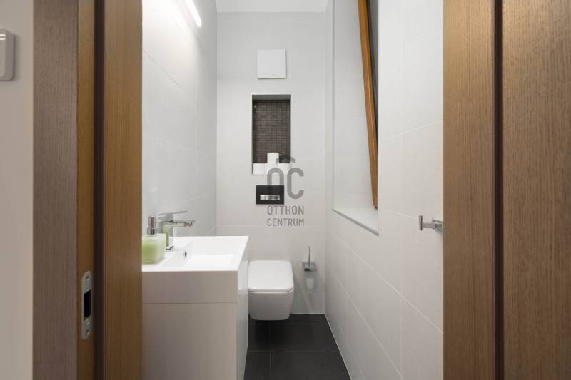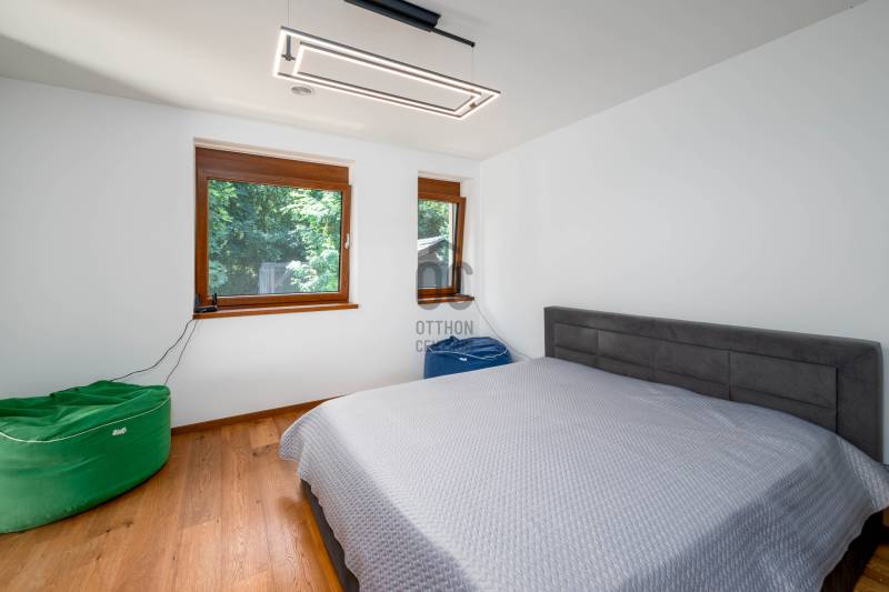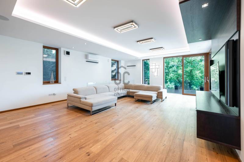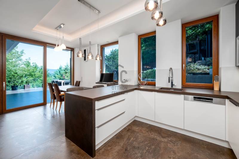 Megvételre kínálunk egy, a Pilisre és a városra néző, lenyűgöző örökpanorámás, 279,9 négyzetméteres, 3 szintes, 6 szobás, minden igényt kielégítő családi házat a III. kerületben, Testvérhegyen. Az ingatlan szerelem első látásra, egy valódi igazgyöngy a piacon, amely egy 1.918 négyzetméteres nyeles telken helyezkedik el. A telek adottságai biztosítják az intim, csendes, nyugodt környezetet. Ideális választás mindazok számára, akik a természet közelségét, a békét és a modern életstílust keresik, anélkül, hogy lemondanának a város közelségéről.A garázs melletti lakótérben egy tágas fogadó- és pihenőrész került kialakításra, melyet üvegfal és üvegajtó választ el a lépcsőtértől. Ezen a szinten található továbbá egy fürdőszoba, valamint a gépészeti helyiség. A földszinten található egy dolgozószoba, mosdó, a tágas nappali, amelyet tolóajtó választ el a konyha-étkezőtől. A 78,06 négyzetméteres hatalmas terasz mindkét helyiségből elérhető. Az emeleten 4 mesés hálószoba erkéllyel, gardrób, 2 fürdőszoba biztosítja a kényelmet.A gyönyörűen gondozott, parkosított kertben olyan növénykülönlegességek is megtalálhatóak, mint a vöröslevelű japán juhar, himalájai selyemfenyő, valamint az amerikai ámbrafa. A kertet virágillat lengi be, madarak csicsergését hallgatva gyönyörködhet a pillangók repkedésében. A 41,14 négyzetméteres kétállásos garázs, valamint a ház előtti hatalmas térkövezett tér összesen akár 9 autó parkolására alkalmas, ami igazi kuriózumnak számít. Télen a fűthető felhajtó biztosítja a hómentességet.Ezt az ingatlant a tulajdonosok valóban maguknak építették, amit a magas színvonalú kivitelezés, a prémium biztonsági rendszer, valamint a kiemelkedő műszaki tartalom is igazol.Az ingatlan energiaigénye minimális, energetikai besorolása A+++, CO2 kibocsátása: A+++.Az alacsony üzemeltetési költségek többek között az alábbi technológiáknak köszönhetők:-háromfázisú inverteres levegő hőszivattyú-padló- és mennyezet hűtés/fűtés (a garázsban is egyedileg szabályozható)-napelem rendszer-hővisszanyerős szellőztető rendszer -csapadékvíz-gyűjtő tartály -a legkorszerűbb Internorm alu-műanyag nyílászárók beépített nyitásérzékelőkkel, valamint Internorm alumínium bejárati ajtó oldalbevilágító ablakkal - 4 rétegű üvegezéssel -a legkiválóbb hőszigetelő anyagokKiegészítő/alternatív fűtés/hűtés:-kandalló- inverteres klíma WiFi modullalEz az ingatlan a legkiválóbb választás, akár ideális otthont, akár értékálló befektetést keres!Bővebb információkért, részletes műszaki specifikációért keressen bizalommal a hét bármely napján! |