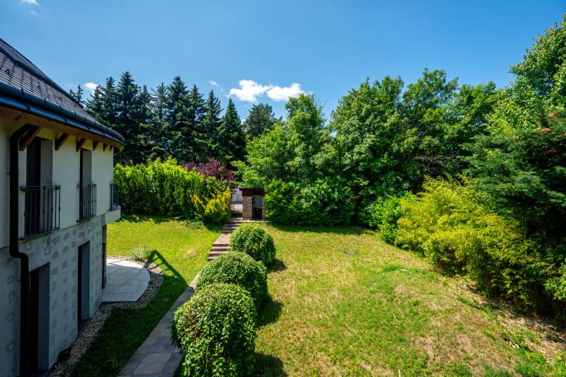 Megvételre kínálunk egy kivételes adottságokkal rendelkező, 2 lakásos, négy szintes családi házat, amely a természetvédelmi terület szomszédságában, csendes, zöld környezetben helyezkedik el. Az ingatlan összközműves telken található, amely 2000 m²-es, a ház pedig nettó 483 m² alapterületű.A pinceszinten mosókonyha lett kialakítva, valamint itt kapott helyet a gépészeti helyiség. Ezen a szinten könnyen kialakítható fitness részleg (36,44 m2), valamint egy médiaszoba (28,10 m2). A földszinten található 2 nappali (az egyik átalakítható amerikai konyhás nappalivá), konyha-étkező, illemhelyiség. Az 1. emeleten összesen 4 hálószoba helyezkedik el, mindegyik saját fürdőszobával és erkéllyel rendelkezik.A 2. emeleten található a főhálószoba saját, sarokkádas, dupla mosdós fürdőszobával, dolgozószoba, illemhelyiség bidével, tároló, családi tér/társalgó.Főbb jellemzők:Gázkazán padlófűtésselFatüzelésű kandalló, amely az egész ház fűtését biztosíthatjaA földszinten lehetőség van plusz kandalló beépítéséreNapkollektoros rendszer a fenntartható energiafelhasználás érdekébenVezetékezés előkészítve klíma és központi porszívó beépítéséhezRiasztórendszerElektromos kapuElektromos redőnyök beépítése elő lett készítveHőszivattyú helye kialakítottHáromrétegű ablakokTágas kétállásos garázsElhelyezkedés és környezet:Az ingatlan a II. kerület egyik legkeresettebb részén, Petneházyréten található. A környék csendes, zöldövezeti, mégis kiváló infrastruktúrával rendelkezik. A közelben számos bevásárlási lehetőség és alapvető szolgáltatás elérhető, többek között szupermarketek, kisebb üzletek és piacok. A családosok számára különösen előnyös, hogy a környéken több óvoda és iskola is található. ✔ Bevásárlási lehetőségek: Számos kisebb üzlet, valamint a Budagyöngye Bevásárlóközpont, a Stop Shop és a Hűvösvölgyi Spar is rövid autóúttal elérhető.✔ Oktatási intézmények: A közelben több kiváló óvoda és iskola is található, például a Budapesti Német Iskola, a Klebelsberg Kuno Általános Iskola és a Gyermekek Háza Alternatív Általános Iskola, Völgy Utcai Ökumenikus Óvoda, Gesztenyéskert Óvoda✔ Egészségügyi és egyéb szolgáltatások: Gyógyszertár, háziorvosi rendelő, bankok, éttermek és sportolási lehetőségek egyaránt könnyen elérhetők.Kiváló közlekedés:Az ingatlan tömegközlekedéssel és autóval egyaránt könnyen megközelíthető. A 22, 22A és 222-es buszok néhány perces sétával elérhetők, amelyekkel Hűvösvölgy és a Széll Kálmán tér is gyorsan megközelíthető. Az autós közlekedés is kényelmes, a Budakeszi út és a Szilágyi Erzsébet fasor könnyű összeköttetést biztosít a belvárossal.Ez az ingatlan kiváló lehetőséget kínál azok számára, akik nyugodt, természetközeli környezetben szeretnének élni, miközben a város nyújtotta kényelmi szolgáltatások is könnyen elérhetők. További információért, megtekintési időpontért vegye fel velem a kapcsolatot elérhetőségeim egyikén.Hívását a hét bármely napján örömmel fogadom! |