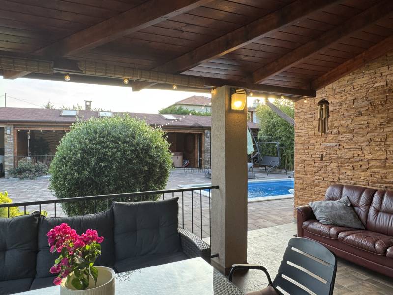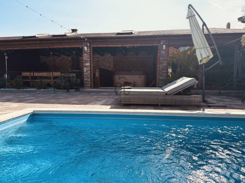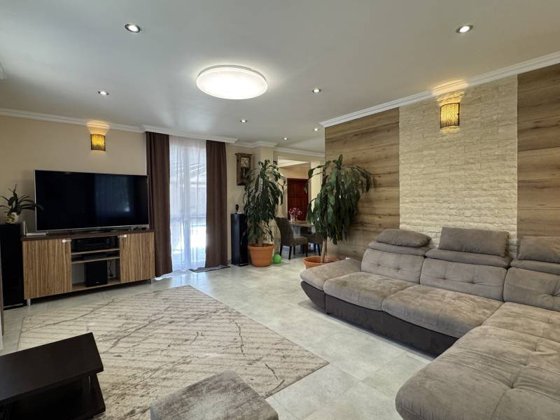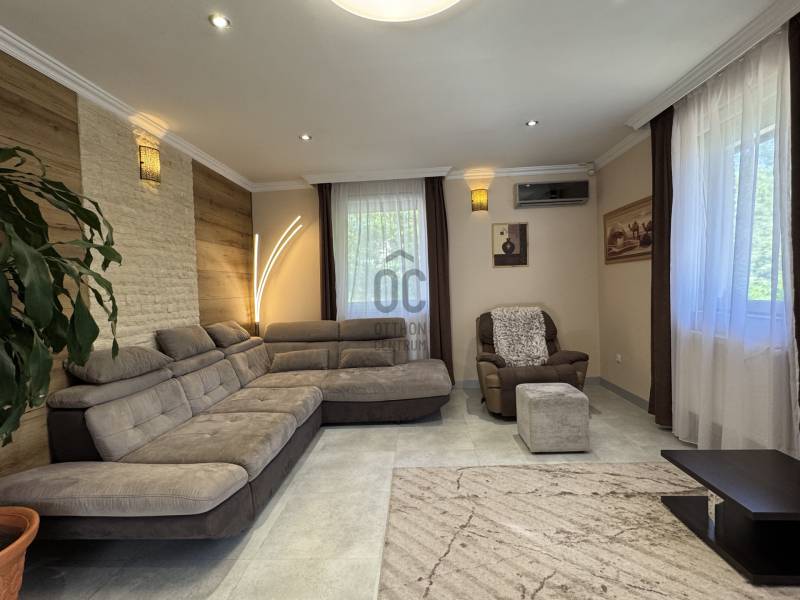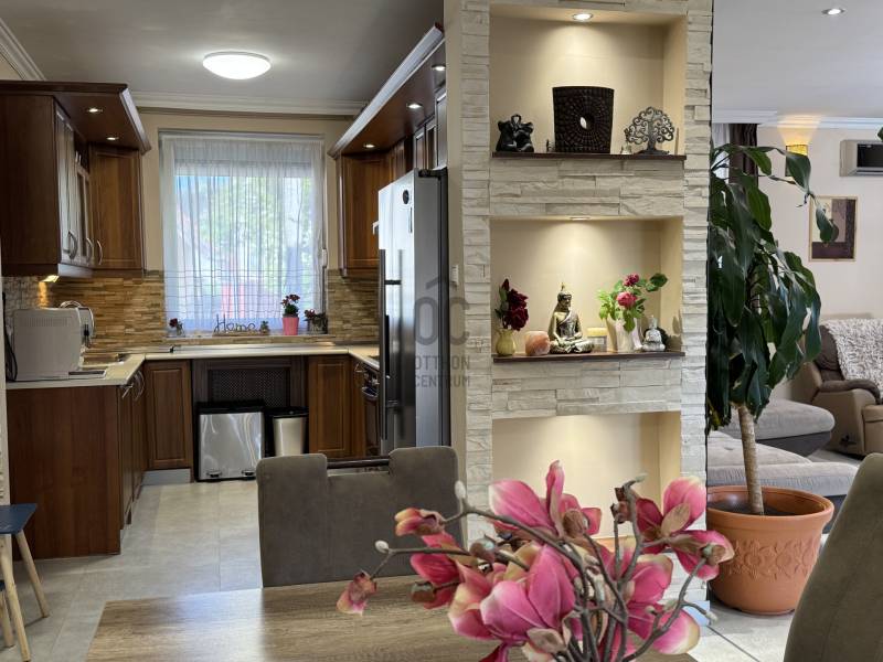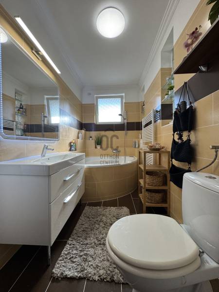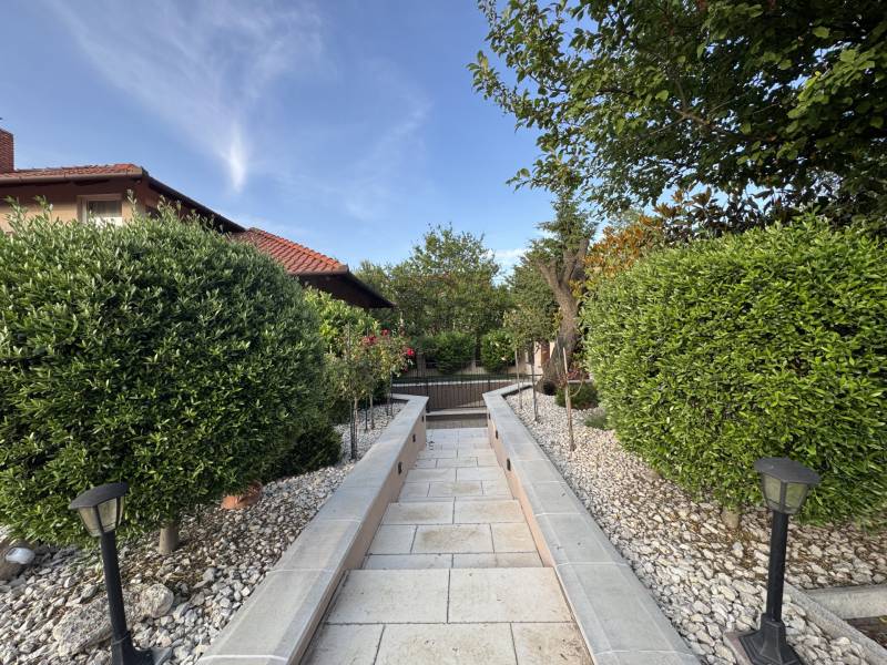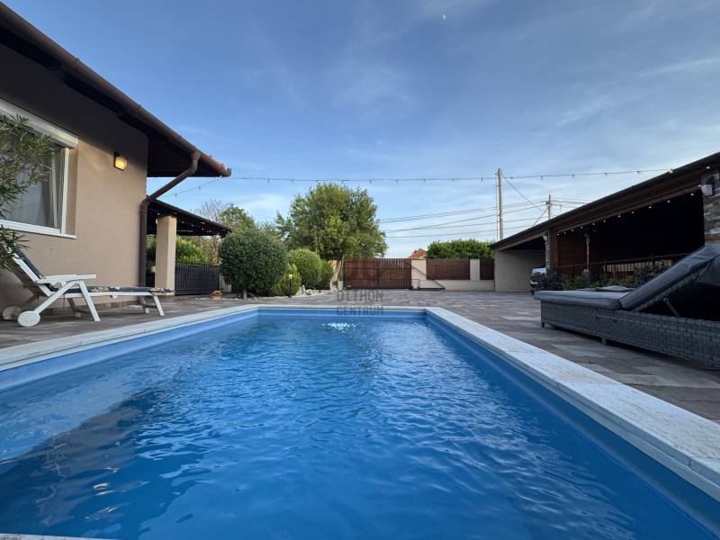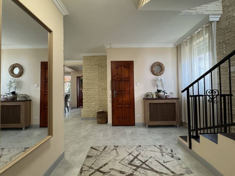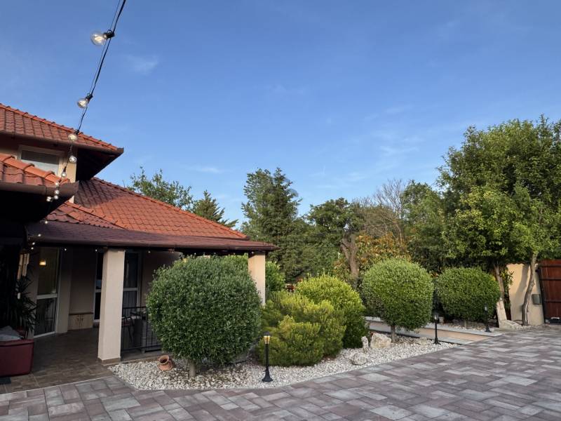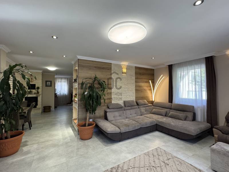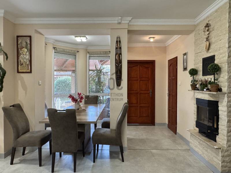 Eladó Érd Parkváros egyik legkedveltebb részén egy egyedi megjelenésű, prémium mediterrán hangulatú családi villa, amely nemcsak egy ingatlan, hanem egy komplett életstílus. Ideális választás azoknak, akik nem szeretnének építkezéssel, döntésekkel és hosszú kivitelezési folyamatokkal foglalkozni, hanem egy kész, magas minőségű otthonba költöznének.A 310 m²-es lakótér és a 850 m²-es, gondosan rendezett telek tökéletes egyensúlyt teremt a tágas belső terek és az élhető kültéri környezet között. Az ingatlan 5 szobával, külön home office-szal és átgondolt elosztással rendelkezik, így akár több generáció számára is ideális.A ház egyik kiemelkedő eleme a saját wellness tér, amely a mindennapok részévé válik:- fűthető medence- jakuzzi- különálló szaunaház pihenőtérrelA kültéri élettér szintén különleges: a nagyméretű, fedett terasz kandallóval valódi második nappaliként funkcionál, így egész évben tökéletes helyszín családi és baráti összejövetelekhez.A belső kialakítás a kényelmet és a funkcionalitást helyezi előtérbe:- szülői hálószoba saját fürdőszobával- több fürdőszoba és WC- gardrób és külön dolgozószoba- alsó szinten külön bejáratú lakrész saját konyhával- konditerem vagy multifunkcionális térA műszaki felszereltség a prémium kategóriát képviseli, minden a kényelmet és a hosszú távú értéket szolgálja:- padlófűtés, korszerű gázkazán- kandalló- több klímaberendezés- elektromos redőnyök- beépített bútorok- biztonsági rendszerAz ingatlanhoz tartozik 2 fedett és 2 nyitott kocsibeálló, valamint rendezett, térkövezett udvar automata öntözőrendszerrel és elektromos kapukkal.A tulajdonos nyitott lehet beszámításra is, elsősorban kb. 100 m²-es társasházi lakás vagy megközelítőleg 100 millió Ft értékkategóriában.Ez az ingatlan nem csupán egy jó állapotú ház, hanem egy tudatosan megtervezett, prémium élettér, ahol az otthon, a wellness és a funkcionalitás tökéletes egyensúlyban van. |