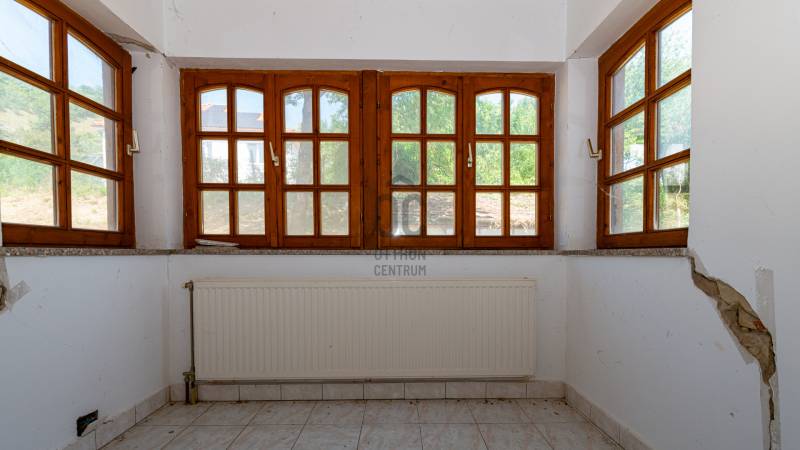 A II.ker határától mintegy 200-300 méterre, Solymár Kakukkhegy nagyon meghitt és hangulatos, aranyos kis zsákutcájában kínálunk megvételre, mintegy 140nm-es, 1602 nm-es telken, teljesen felújítandó családi házat. Az épület jó pár éve nem lakott, az állapota ennek megfelelő. A felújítást követően igen egyedi és attraktív lakóház valósítható meg. Földszint és tetőtér beosztású,közvetlen kert és teraszkapcsolattal. A földszint nagyon világos,körben nyílászárókkal ellátott nappali,konyha és étkező továbbá hálószoba és még egy fürdőszoba beosztású. Az emeleti szint egy légtérben került kialakításra. Minden közmű bevezetésre került. A teraszokról és maga a kertből is élvezhetjük az elbűvölő és magával ragadó elénk táruló panorámát. Az ingatlan a zsákutca legelején található, abszolút körbenapozott,teljesen mentes az áthaladó forgalomtól,nagyon kellemes adottságú,kimondottan zöldben elhelyezkedő,a természettel harmonizáló környezetben. A mintegy 40m széles telek gondozott és karbantartott, két utcafrontra nyílik, bokrokkal és fákkal tagolt ezáltal igen intim szférát biztosít az itt lakók számára. Az egész ingatlanról elképesztő és igen egyedi panoráma tárul elénk. Itt valóban harmonikus és kellemes, a zöld közelségét teljesen kihangsúlyozó az élet. |