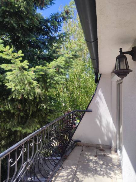 Második kerület méltán népszerű város részén Adyligeten kínálunk megvételre egy jó hangulatú azonnal költözhető 275 nm-es családi házat.Igazi madárcsicsergős erdő közeli ,csendes utca átmenőforgalomtól mentes.2003-ban épült ingatlan 585 nm- es telken helyezkedik el,három szintre tagolódik.Garázsszint,közösségi tér,emeleti privát szféra.Házat zöld buja növényzet veszi körül ,nagy méretű teraszokkal,Nappaliból egy nagyon impozáns téli kertbe léphetünk ki,amit rossz időben is zavartalanul használhatunk.Igényesen megépített ház,fűtéséről vadonat új kondenzációs kazán gondoskodik.Hűtését a tetőtérbe telepített klímaberendezéssel oldották meg.Garázs szinten ,találhatunk egy szaunát ,ami a lakók kényelmét szolgálhatja,tusolóval.Borkedvelőknek borospince áll rendelkezésre.Két autó kényelmesen elhelyezhető.Földszinten , óriási nappali,étkező,konyha egy térben helyezkedik el ,igazán monumentális látvány.Emeleten három háló két fürdőszoba kapott helyet.Nagy hálóhoz \"master bedroomhoz\",kádas,tusolós fürdőszoba,garderobe szoba kapcsolódik.Minden hálónak erkély kapcsolata van,így zavartalanul gyönyörködhetünk a környék panorámájában.Az ablakokat motoros redőnyőkkel szerelték fel,így a mozgatásuk nem jent problémát.Tisztelt érdeklődő várom megtisztelő hívását,hétvégén is. |