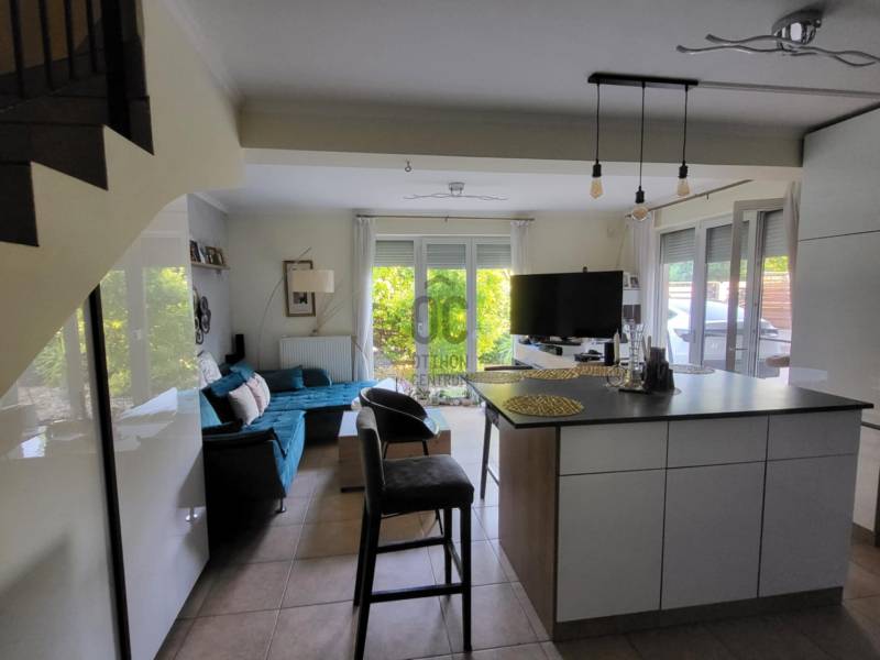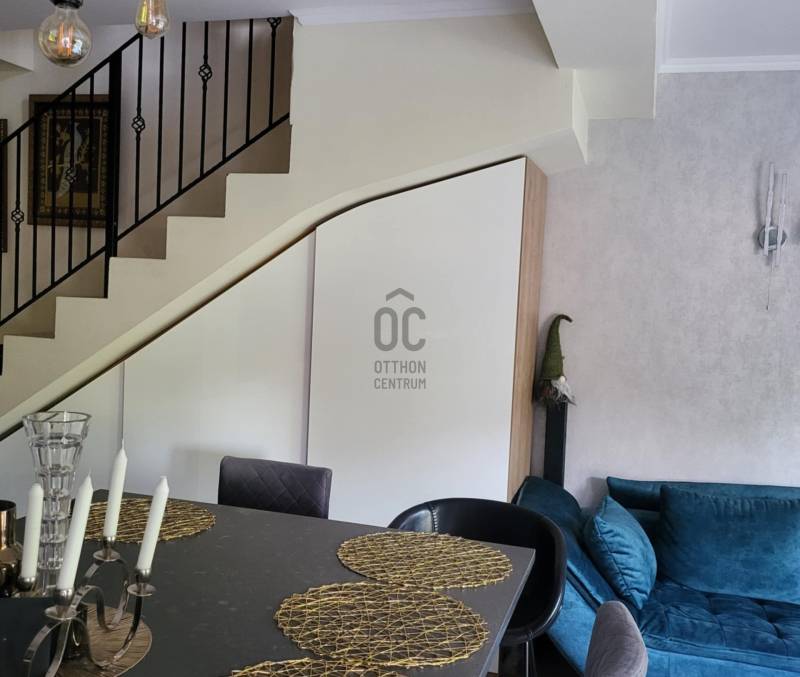 Fedezze fel ezt a lenyűgöző, modern ikerházfelet, amely Budaörs központi, mégis csendes részén várja új tulajdonosát. A lokáció tökéletes: pár perc az autópálya, a bevásárlóközpontok és Budapest határa, így minden elérhető, miközben otthona a kertvárosi nyugalom szigetét kínálja.A teljes konyha/nappali pár éve lett felújítva a modern bútorok és a korszerű gépek beépítésével.A 5 szobás, teraszos és erkélyes otthon minden részletében a kortárs design és a minőség találkozása. A gondosan megtervezett belső terek, a beépített szekrények által maximalizált helykihasználás és a letisztult, egyedi stílus azonnal magával ragad.Az épületet prémium anyagok felhasználásával alkották meg, ahol minden felület és részlet a minőség iránti elkötelezettséget tükrözi. A napfényes terek és a tetőtér beépítésének lehetősége további rugalmasságot adnak a jövőre nézve.A napelemeknek és az A++ energetikai besorolásnak köszönhetően az otthon környezettudatos és rendkívül alacsony fenntartású, így az elegancia mellé tudatosság is társul.Ez az ingatlan nem csupán egy ház — élettér, amely inspirál, megnyugtat és kiemel a hétköznapokból.Azonnal költözhető, kompromisszummentes választás azoknak, akik a tökéletest keresik. |