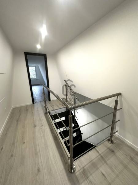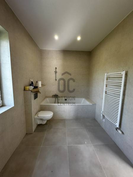 Eladó Telkiben új építésű, K. ÉK.-i fekvésű, családi ház, csendes mellékutcában. Alap, falak, födém és tető szigetelt. A Minimál stílusú épület nappali-étkező- konyha, előtér (bejárat), kettő fürdőszoba (káddal és zuhanyzóval), három hálószoba, kettő félszoba (padlástérben), közlekedő valamint előszoba. A nappaliból valamint a konyhából a kényelmes, kertkapcsolatos teraszra lehet kilépni. A kertben kettő – három autónak nyitott gépkocsibeálló került kialakításra, betonozott, térkövezett. Kívülről a már végleges arculatával kerül átadásra az ingatlan, új kerítéssel, automatizált kapuval. A kert terep-rendezetten, füvesítve, (benne már koros fák, találhatóak), továbbá kerti csap és kerti világítás is kialakításra került. Továbbá a kertben kicsi faházikó van, egyéb tárolási lehetőséget biztosít, benne víz és csatorna kiállásokkal. A mai korszerű igényeknek megfelelően kiváló műszaki és energetikai paraméterek. Cserépfedés. Falazat 30-as Porotherm tégla 20 cm szigeteléssel, a tetőn 25 cm. – 30 cm. szigetelés. 10 Kw-os energiatakarékos levegő- vizes Hőszivattyú fűtés, padlófűtéssel és fan-coil rendszerű hűtéssel. Fatüzelésű kandalló kialakítva. Napelemrendszer vezetékezése előkészítve (igény szerint kiépítés). Három rétegű szigetelő műanyag (bukó - nyíló) nyílászárók. Biztonsági bejárati ajtó. Kaputelefon. TV és Internethez szükséges vezetékezés. |