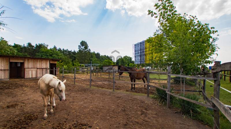 Kecskemét-Méntelek mezőgazdasági övezetében, az M5-ös mellett ajánlom figyelmébe ezt a takaros lovardát, mely többféle bevételi forrással keresi új tulajdonosát!A szűken 3 hektáros területen egy kivett tanya 5 boxos istállóval, több, az állattartáshoz elengedhetetlen melléképülettel, egy könnyűszerkezetes lakóépülettel és egyéb építményekkel rendelkezik.2db fúrt kút biztosítja a terület vízellátását, villany bekötve, ipari árammal!10-12 ló tartására alkalmas, ugrópályával, legelőkkel, kiválóan alkalmas bértartásra, csoportos/egyéni lovagoltatásra, lóképzésre, tenyésztésre.Állami támogatás igénybevehető a területre. Jelenleg 50db gyümölcsfa és hatalmas földterület áll a gazdálkodás, növénytermesztésre vágyók szolgálatába. Van lehetőség további 4 hektár erdő megvásárlására, melynek ára 15 millió forint!Igény szerint a vételár tartalmazhat 3 kancát, mely remek segítség lehet egy újonnan induló vállalkozásnak.Jelenleg egy hatalmas reklámtábla bérbeadása is növeli a gazdaság bevételeit, mely legalább félmillió forinttól bérbeadható, de nagyobb cégeknél ez az összeg jóval nagyobb is lehet.A tulajdonos budapesti, kecskeméti lakást, valamint a Balaton környékén telket is beszámít! |