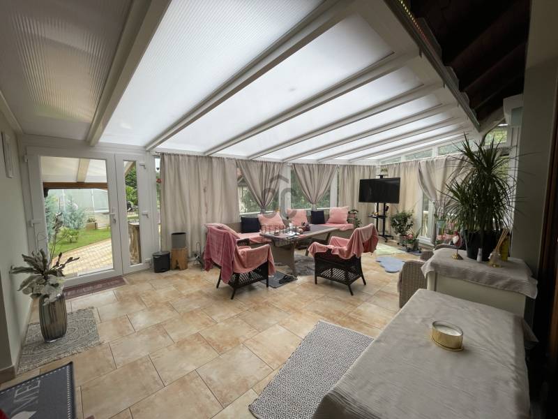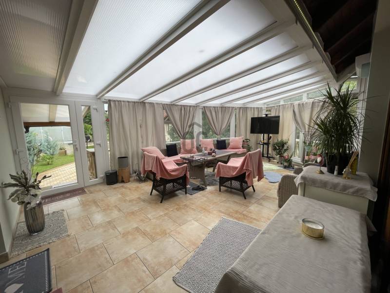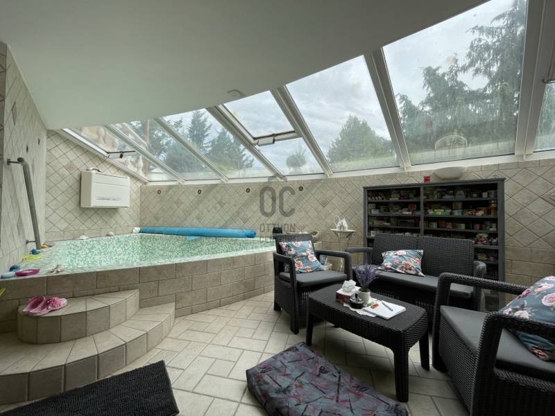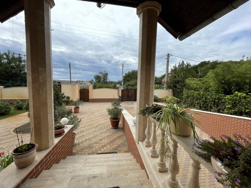 Az ingatlan magas minőségben, egyedi elgondolások alapján épült 2005-benAz ingatlan a legtöbb luxusfelszerelést tartalmazza, amit meg lehet valósítani.2023-ban 25kw-os napelemrendszer került beépítésre!Szuterén:- wellness részleg, mely infraszauna, jakuzzi, - társalgó, - 2 hálószoba- borozó helyiség - 1 nagy méretű dupla garázst Földszint:- konyha kamrával, - nagy méretű nappali kandallóval- étkező- hálószoba- dolgozószoba- gardrobe- nagy zárt terasz amely téliesített, klimatizált.- a telek gyönyörűen parkosított, automata öntözővel felszerelt. - az udvaron 60 nm-es zárt szaletli - fedett úszómedence (10m x 5.5m x 1.80m) - a kert hátsó részén játszótér, sütögető és 2 faház kapott helyet- központi porszívó- klímákAz ingatlan alaposan átgondolt tervezéssel készült. Ennek köszönhetően a legapróbb részletekig tartalmaz egyedi és praktikus vagy luxus megoldásokat. Javaslom olyan családoknak, akik nagy családdal vagy baráti körrel rendelkeznek és szeretnek vendégséget fogadni.Ugyanakkor alkalmas a mindennapi élet mellett otthoni vállalkozás elindításához.Amennyiben felkeltette érdeklődését hívjon bizalommal! |