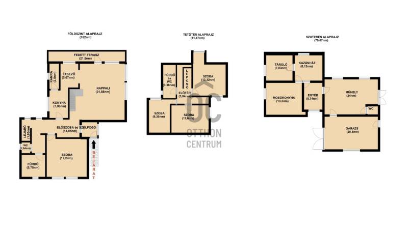 Árcsökkenés!!!!Megvételre kínálunk Környén , Tatabányától 6 km-re egy 5 szobás átlagos állapotú családi házat garázzsal, 729 nm-es telekkel.A ház a 80-as évek közepén épült három szinttel. Összesen 232nm, 143,5 nm hasznos, lakható alapterülettel. A földszinten került kialakításra egy tágas, fényes nappali közvetlen terasz/erkély kapcsolattal.Itt kapott még helyet egy étkező, egy konyha kamrával egy hálószoba , egy fürdőszoba és egy külön WC.A tetőtérben három hálószoba és egy fürdőszoba+WC található.A szuterén szinten garázs, műhely, egyéb tároló helyiségek állnak még rendelkezésre, illetve innen lehet lemenni az épület alatt található borospincébe is. Fűtése több féle képpen is megoldott. Gázkazánnal, vegyestüzelésű kazánnal, klímával, vagy egy vadonat új telepítésű elektromos kazánnal. A kert rendezett, telis-tele virágokkal, dísznövényekkel, gyümölcsfákkal és a kert végében egy tároló helyisggel.Az utca kisforgalmú, többnyire csak az itt lakók használják. A szomszédság és a környék rendezett, hasonló házakkal.Az ingatlan jelenleg üresen áll, így vétel esetén azonnal birtokbavehető.Méretéből és helyiségeiből adódóan ideális lehet gyermekes családok vagy összeköltözők részére, illetve a szuterén szint miatt tökéletes lehet otthon végezhető vállalozás számára.További információért, műszaki és építési paraméterekért, vagy megtekintés végett vegyék fel velem a kapcsolatot.Az Otthon Centrum irodánkban Önnek 20 bank és pénzintézet ajánlata közül választjuk ki a legideálisabbat. Amennyiben új, vagy használt lakást vásárolna, de nem rendelkezik elegendő fedezettel, úgy hiteltanácsadónk először felméri hitelképességét. Majd megismerteti Önnel a különböző banki termékek részleteit, és segít eldönteni, hogy mely hitelkonstrukció, vagy igényelhető támogatási forma a legmegfelelőbb az Ön számára. CSOK PLUSZ igénylésében is tudunk segíteni Önnek.Nagyon nehéz és időigényes feladat eligazodni a sok banki termék és fogalom között, rendkívül bonyolult feladat a különböző lehetőségek összehasonlítása és még annál is bonyolultabb az ideális megoldás megtalálása. Az Otthon Centrum Hitel Center nagy tapasztalattal és naprakész banki információval rendelkező szakértői segítenek eligazodni 20 bank és pénzintézet termékei között és megtalálni az Ön igényeinek leginkább megfelelő személyre szabott megoldást. A hitel kiválasztását követően ismertetik Önnel, hogy milyen dokumentumok kitöltésére illetve beszerzésére lesz szükség. A hitelkérelmi csomag összeállításban kollégáink mindenben segítségére lesznek, majd az elkészült dokumentációt eljuttatják a bankba. Ha kérdése merül fel, hívjon bizalommal! |