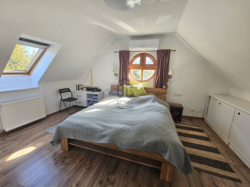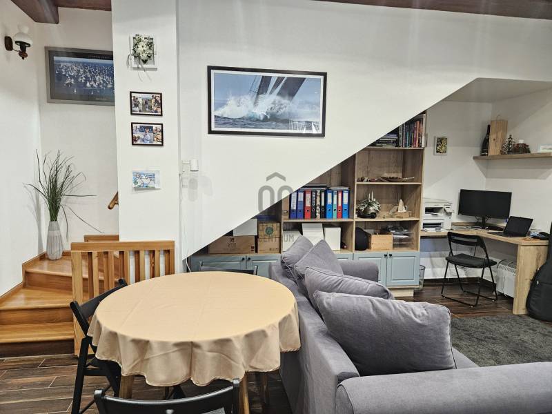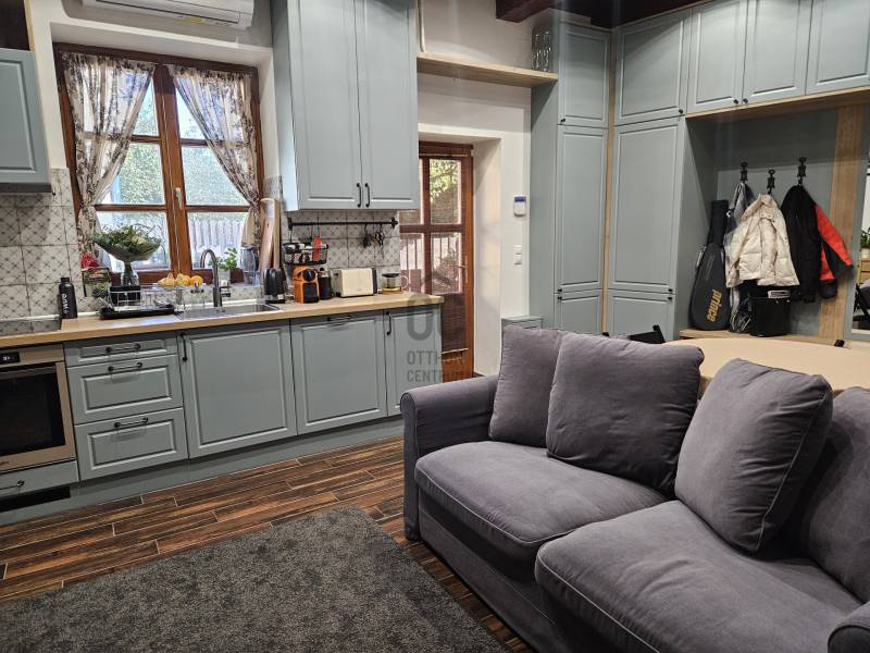 NAGYKOVÁCSI SZÍVÉBEN, SZÁMOS LEHETŐSÉGGEL RENDELKEZŐ IGÉNYES OTTHON VÁRJA ÚJ LAKÓIT!Amennyiben ingatlan vásárlás terén fontos szempont önnek a kiváló elhelyezkedés, a jó közlekedés, a hibátlan infrastruktúra, a minőségi, felújított állapot, és előny a minimális rezsi, akkor ez az ingatlan igazán jó választás lehet.ÜZLET:A ház utcafronti részén üzlethelyiség került kialakításra, amelyben számos lehetőség van. A jelenlegi tulajdonos, eladás esetén szívesen bérli, de vállalkozó szellemű tulajdonos esetén, itt megvalósítható bármilyen szépségszalon, vagy iroda. Amennyiben inkább a lakóteret szeretné bővíteni, ez a rész az előszoba fogas részénél összenyitható a lakrésszel, így akár a nappali átköltöztethető.HÁZ:A társasház első, utcafronti lakása eladó. A négy Külön helyrajzi számmal rendelkezik. A lakás 78 nm, belső kétszintes területe két éve teljes felújításon esett át, mely érintette a teljes villany, víz és fűtés hálózatot, valamint a teljes belső átépítésre és a tetőszerkezet felújítására ekkor került sor. Mindenhova hőszigetelt fa nyílászáró került az ingatlanban.Alsó szinten amerikai konyhás nappali kialakítású, a tömör, ápolt fa lépcsőn feljutva pedig tároló, fürdő és két hálószoba található.A ház rendkívül alacsony rezsije a hibrid inverteres napelemrendszernek köszönhető (10 kwp teljesítményű) . KÖRNYÉK: Központi elhelyezkedésének köszönhetően kitűnő infrastruktúrával rendelkezik. Boltok, gyógyszertár, park, iskola, óvoda, buszállomás 1-2 perc sétatávolságra található.Amennyiben igényes otthonra vágyik Nagykovácsiban, várom hívását! |