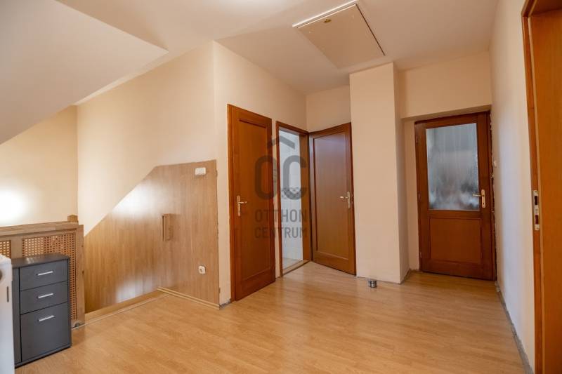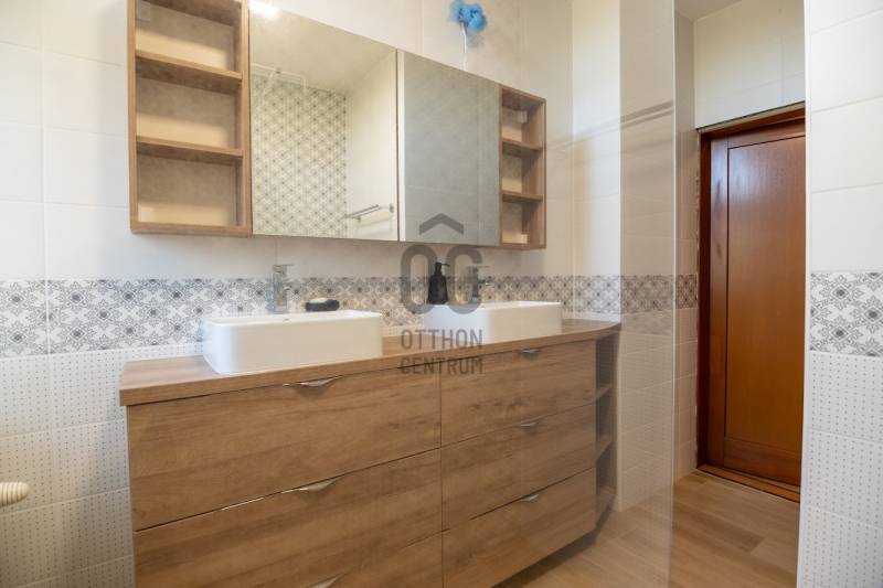 Eger Csákó városrészén, nyugodt, csendes és biztonságos környéken egy ragyogó, Eger-patakra néző családi ház eladó. Az 1960-as években épült ház 2000-ben teljesen felújítva, 2011-ben a jelenlegire bővítve, 2021-ben felújítva és 2023-ban a teljes fűtésrendszere korszerűsítve lett.A kondenzációs kazánon kívül még 2000-ben megépítésre került egy fa tüzelésű kandalló is.Kiknek ajánljuk?Az elegáns, mégis barátságos otthon egyaránt nagy lehetőség befektetőknek és nagycsaládosoknak.Panziónak, magánrendelőnek, magánklinikának, cégközpontnak, de akár magániskolának is kiválóan alkalmas. Az udvaron és a garázsokban egyszerre 5-7 személygépkocsinak van hely, de az utcán is lehetőség van ingyenes parkolásra.Nagycsaládosoknak is kiváló lehetőségeket rejt a környék, hiszen bölcsőde, óvoda és iskola is található pár perces sétára. Az Érsekkert, a strand és az uszodák is pár perces bicikliútra vannak. A nyugodt utca ideális arra is, hogy a gyermekek biciklizni tanuljanak (a gyerekeknek szánt tanuló KRESZ-pálya a patak túloldalán található), a közelben 2 kerékpárút is fut.Spar, Szuperett-Coop, zöldséges, pékség, gyógyszertár, játszótér, kávézó, étterem, cukrászda, fagyizók vannak sétatávra.A környéken lakók nagyszerű közösséget alakítottak ki, a Haranglábnál évente többször közös főzést, Mikulás-napi és egyéb programokat szerveznek.A házról:A ház egy 602 nm-es saroktelken áll.A minden igényt kielégítő családi ház belső két szintes és összesen 394 nm, melyben 10 szoba, konyha, kamra, 3 fürdőszoba, ebből egy sarokkáddal, WC-vel és bidével, 2 fürdőszoba pedig zuhanyzóval rendelkezik, továbbá 2 WC került kialakításra.Az ingatlanra az utcáról 2 bejáraton át lehet bejutni, az udvarról pedig 3 ajtón keresztül lehet a házba lépni, így akár több generáció összeköltözésére, de különböző vállalkozási lehetőségek számára is alkalmas lehet.A ház eleganciájához hozzájárul az alsószint nagyrészének gránit burkolata, mely nyáron kellemesen hűvös, illetve a hangulatos nagyméretű fatüzelésű sarokkandalló, mely a képeken is jól látható. A kandallón kívül a 2023-ban beszerelt kondenzációs kazán, az azt kiegészítő fás kazán, illetve a 2010-ben felszerelt napkollektorok gondoskodnak a melegről. A termosztát mobiltelefonról is irányítható. A 25 cm-es hungarocell-szigetelés segíti az adott évszakban kívánt hőmérséklet megtartását. A nappaliban, illetve az emeleten 2 hálószobában 2021-ben és 2022-ben beszerelt wifis Midea-légkondícionáló berendezések segítenek hűteni-fűteni. Minden szobában található szúnyoghálós ablak. Az emeleti nagy hálószoba ablakaira 2021-ben távirányítós redőnyök kerültek felhelyezésre.Az udvar:A kapu és garázskapuk távírányítós, elektromos működésűek.Az udvaron egy 2 beállós 48 nm-es, valamint egy 20 nm-es garázs lett építve. A duplagarázsba az oldalsó ajtón keresztül is be lehet jutni. Az udvaron további min. 2 személygépkocsinak van elegendő hely.A 48 nm-es garázs felett, annak teljes terjedelmében került kialakításra egy száraz, tárolóként funkcionáló padlás.A kertben tűzrakóhely, illetve kertibútorok számára kövezett sarok található. Esténként az udvari lámpák fényénél lehet élvezni a békák kuruttyolását.Amennyiben meg szeretné tekinteni, hívjon a hét bármely napján! |