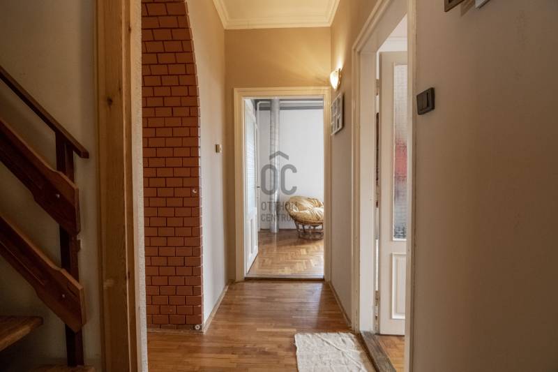 Eladó egy akár 3 generáció együttélésére alkamas ingatlan Pilisen, a főút mellett.Az épületegyüttes egy 1358nm-es telken helyezkedik el (a kert hátsó részén egy 500nm-es telek leválasztható), aminek két utcáról is van bejárása.A főépület szinteltolásos, nagy nappalit és 5 hálószobát tartalmaz. A ház átlagos állapotú: lakható, de felújításra szorul. A felső szinten, a jelenlegi padlástérben fürdöszoba kialakítással két duplakonfortossá tehető.Tágas terek, nagyméretű szobák.A bejáratnál fedett terasz, a konyhánál zárható terasz, az egyik szobából pedig egy loggia nyílik.A száraz szuterén szinten garázs, műhely, valamint a gépészet található (gázkazán és vegyestüzelésű kazán)A kertben több melléképület található, egyikbe a víz és a gáz be van vezetve.Valamint állattartásra alkalmas épületek.Medence.A kert hátsó részében pedig növénytermesztére alkalmas terület van.A ház mind a főút, mind a hátsó kis utca felől autóbeállási lehetőséget kínál.Ha felkeltettem érdeklődését hívjon!Nézzük, Ön mit hozna ki belőle! |