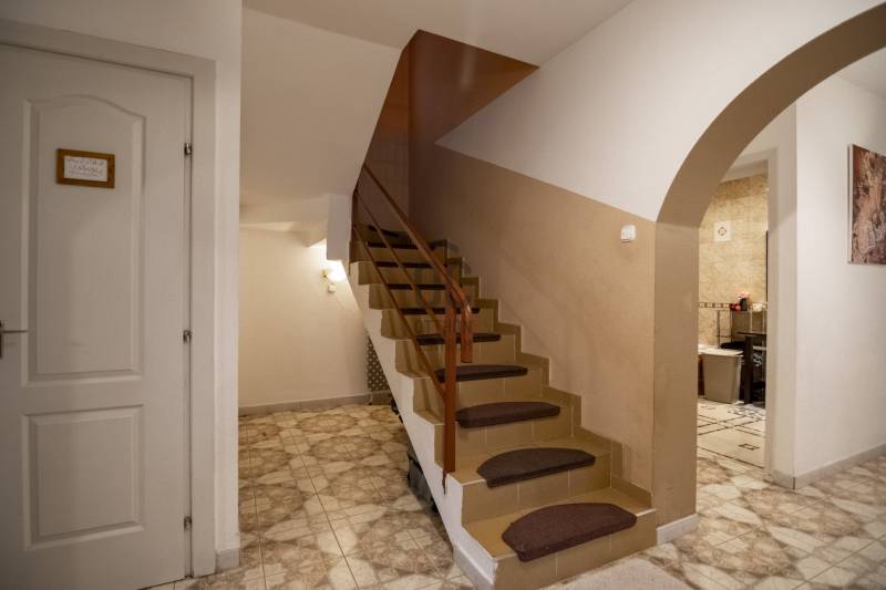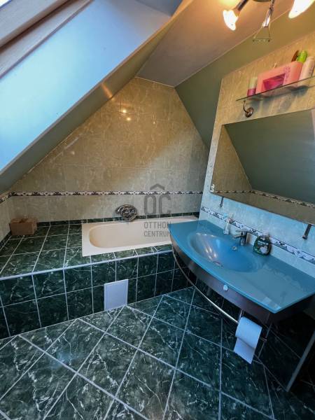 Eladó Gyömrőn a központtól és a tófürdőtől séta távolságra lévő tágas 5 szobás családi ház, 455 m2-s telken! Az ingatlan jellemzői:- Földszint: kellemes előtér, hangulatos, boltíves közlekedő, szoba, óriási nappali, mely körbenapozott, tágas, felszerelt konyha, külön nyíló nagy kamrával, sarokkádas fürdő, külön toalett.-Emelet: két tágas, valamint egy kisebb szoba, fürdőszoba toalettel.A házhoz tartozik egy nagyméretű terasz, amely számos tevékenységnek adhat helyet. Az udvaron található egy garázs, valamint térkövezett kocsibeállók. Nyáron egy nagy diófa adja az árnyékot, melynek tövében sütögető hely lett kialakítva. Az ingatlan szigeteléssel ellátott, fűtéséről és a meleg víz ellátásáról gáz cirkó gondoskodik. A víz melegítése megoldható villanybojlerrel. Az ingatlan ideális családoknak.Amennyiben a vásárláshoz hitelre lenne szüksége, úgy bankfüggetlen pénzügyi szakértőink, személyre szabott konstrukció kiválasztásában - ingyenesen - állnak rendelkezésére.További kérdéseivel kapcsolatban várom hívását! |