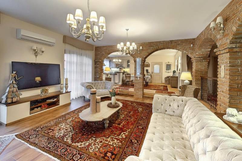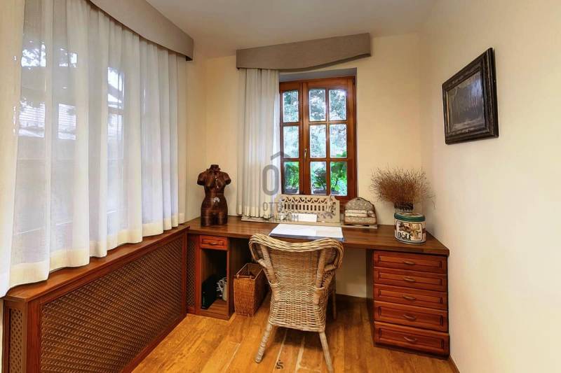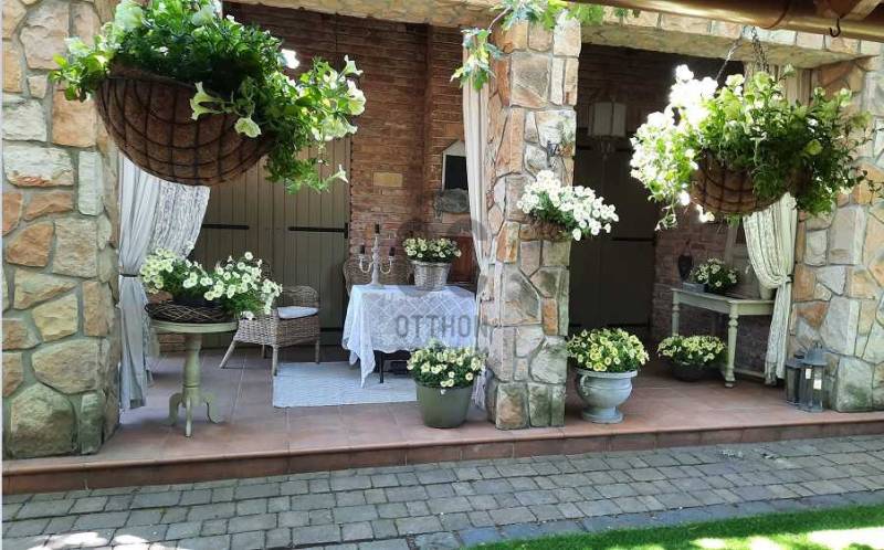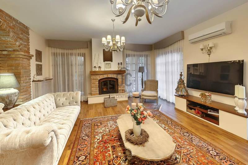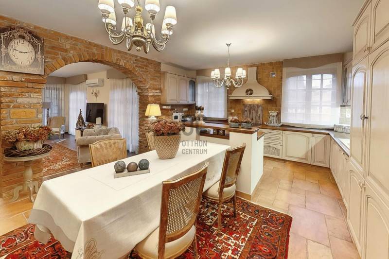 Mediterrán életérzés, belép, és elvarázsol.ELADÓ családi ház, Érd Fenyvesliget -parkváros legszebb utcájában, ősfás környezetben.Budapesttől 18 km-re , csendes, kis forgalmú utcában található ez az ingatlan, csodálatos gondozott kerttel,mely minden évszakban más arcát mutatva, meghitt csendet, és nyugalmat áraszt.Családias lakóövezet, kulturált kedves szomszédokkal.A 2008-ban épült ház két szintes: nappali+4 háló, 250 nm, jelenleg 5 szobás, tökéletes alaprajzzal:Az alsó szinten hatalmas amerikai konyhás nappali ( 60nm ),1 hálószoba,1 dolgozó szoba ,mely vendégszoba is lehet, gardrobe szoba, háztartási helyiség, fürdőszoba, tároló, és vendég wc.Ezen a szinten, lehetőség van +1 hálószoba kialakítására .A felső szinten két nagy méretű hálószoba,( 2x14,5 nm ) és egy fürdőszoba, melyben infraszaunát alakítottak ki.A konyha gépekkel felszerelt,elektromos főzőlappal és sütővel.A lakásnak,közvetlen kapcsolata van a kétállásos garázzsal.A kültéri ajtókat és ablakokat spalettával látták el.A házat szépen körbejárja a nap, minden napszakban napfényes.Extrák:-automata öntözőrendszer,-szabadtéri kerti konyha,- távirányított kapu-és garázsbejárati ajtó.- a biztonságról riasztórendszer gondoskodik- klíma, központi porszívó, víztisztító,-infraszauna, 2 kandalló teszik még kényelmesebbé, komfortosabbá az ott lakók életét. - lehetőség van a bútorok és berendezési tárgyak megvételére is.Ez a csodás ház, kényelmes otthona lehet, akár két generációnak is.Várom megtisztelő érdeklődését.Műszaki leírás:A lakás felújított Fűtésrendszere: kondenzációs kazán ,+ vegyestüzelésű kazánMinden helyiségben radiátor van, a nappaliban padlófűtés Belmagassága: 3 mÉpítés éve : 2008 |
