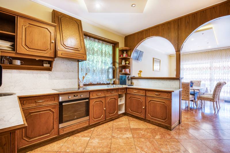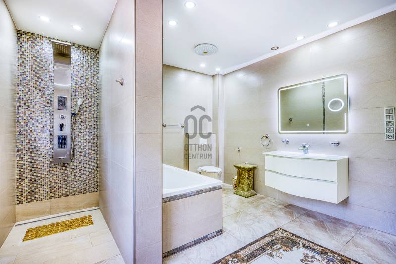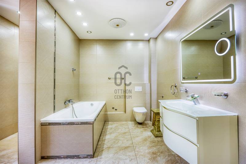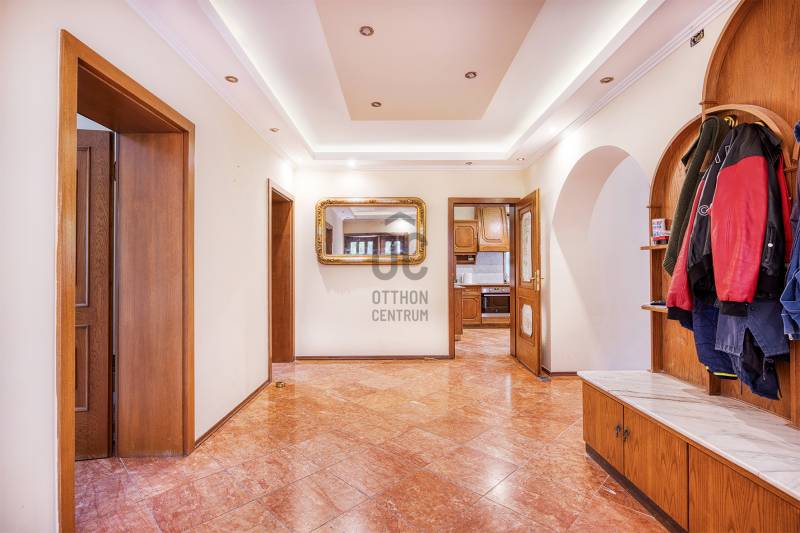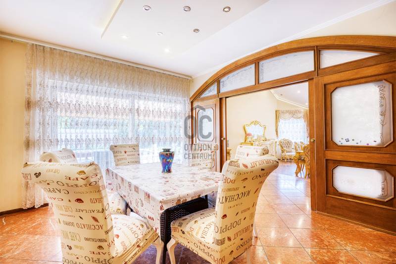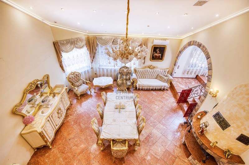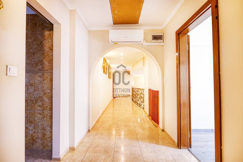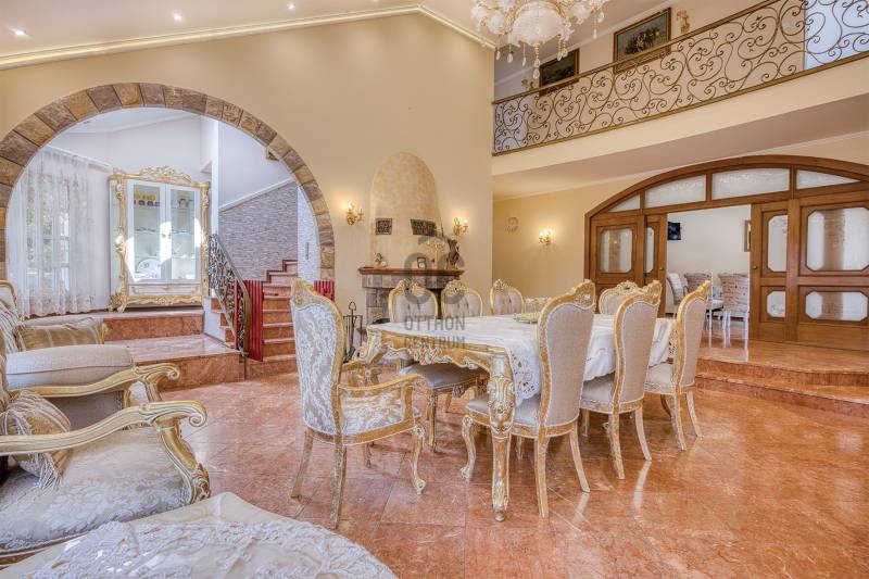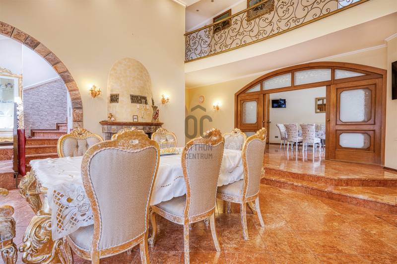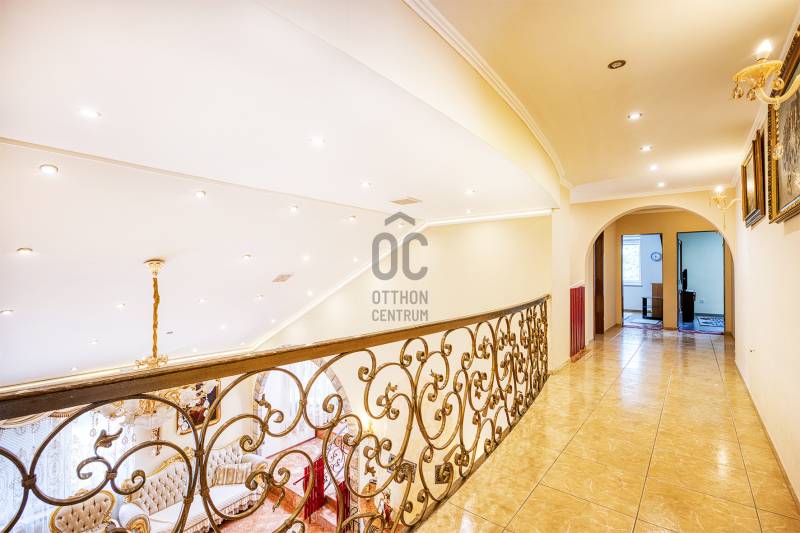A 810 m2-es telken található, 450 m2-es, háromszintes, kiváló elosztású családi ház remek választás nagycsaládosoknak vagy akár kétgenerációs otthonnak.Az ingatlanba belépve tágas előszoba érkezünk mindennek van helye innen nyílik egy balra egy hálószoba, és hatalmas fürdőszoba.Jobbra található lakás szíve, egy csodálatosan elegáns nappali, ahol a 5 méteres, a belmagasság kandallóval hatalmas térrel.A konyha és az étkező 28 nm-es.A felső szinten 3 hálószoba 2 fürdőszoba és egy gardróbkerült kialakításra.