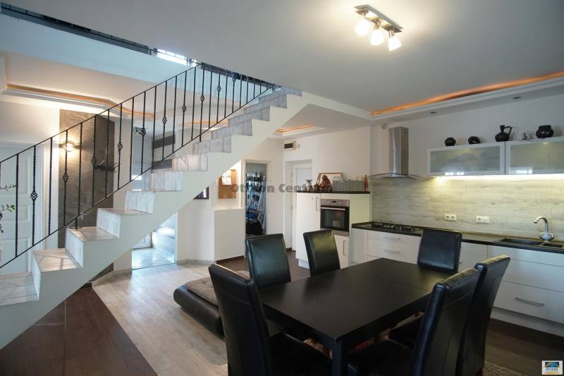 Megvételre kínálok Érd madárneves utcáinál főútvonal mellett, Istvántelep határánál, egy kellemes elosztású, RENDKÍVÜL IGÉNYESEN, jó mínőségű alapanyagokkal felújított, bruttó 200 m2 alapterületű kétszintes családi házat, ami saroktelken épült, körbejárható 728 m2 kerttel. A ház társasházzá is minősíthető, ezáltal nem kell aggódni a rezsi emelkedéstől az új szabályozás miatt. Az ingatlan energia fogyasztása, normál esetben sem lépi túl a határértéket.(Az érdi építési hatóságtól megkérve a kedvezményes gáztámogatás, mivel 2 különálló lakásként is funkciónál az ingatlan alsó és a tetőtéri szintje.)Az épület háromfajta fűtési móddal fűthető télen. az egyik az INVERTERES KLÍMA, KOMBI CIRKÓ és egy VEGYESTŰZELÉSŰ KAZÁN, az utóbbi meghagyták a tulajdonosok, hogyha a gáz szolgáltatás nem megfelelő. Ez a mostani energia árak mellett egy biztonságot adó, alternatív, olcsóbb fűtési lehetőség.Nettó 160 m2, 6 szobás családi ház, duplakomfortos, 2 garázzsal. A belső elrendezés nagyon élhető otthont biztosít, nagy terekkel, világos, napfényes 2 tágas nappali és hatalmas étkező-konyha, új modern konyhabútor.A kapu távirányítóval működtethető és tavalyi évben lett az egész bejárat és környéke viacolorral leburkolva, a külső hőszigetelést és a külső vakolatot kapott a ház.Saroktelken helyezkedik el, ami 2 bejárattal is rendelkezik ezáltal legalább 4 autó beállásra alkalmas hely van, ami szintén viacolor burkolattal fedett. A kerti dolgok tárolására pedig egy külön szerszámtároló, ami a garázs mellett helyezkedik el.A ház alkalmas több generációnak is akár vagy többgyerekes családnak. De tovább gondolva üzleti tevékenységre is kiváló lehetőséget biztosít, ki milyen tevékenységre szeretné használni.Jó közlekedéssel, közel van az iskola, óvoda, tömegközlekedés, orvosi rendelő, CBA, M7, M6 5 perc autóval. Az intim kertben található egy nagyobb terasz, ahol egy kemence került megépítésre, ahol azon kívül grillezési és baráti összejöveteleket lehet tartani. |