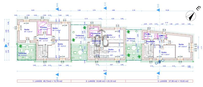 Érd Parkváros -Vincellér határán, főúthoz közel, eladó három, kiváló minőségben épülő sorházi lakás. A ház külső homlokzata, letisztult, minősége kiváló.Műszaki tartalom:A határoló falak Bakonytherm nútos 30-as téglából épültek. A lakások között dupla 30-as fallal elválasztva 15cm-es EPS hőszigeteléssel. A lakásokon belüli válaszfalak 10cm-es Ytong falazóelemből épültek. A tető, betongerenda födémmel, vasalt monolitbeton kiegyenlítéssel, 20 cm EPS 100-as hőszigeteléssel, hegesztett PVC vízelleni szigeteléssel készült. A födém alkalmas nagyobb napelem rendszer telepítésére. Az aljzatok vízszigeteléssel, 10cm EPS100-as lépésálló szigeteléssel, hővisszaverő fóliával készültek.A lakások padlófűtéssel, önálló levegős hőszivattyúval kerülnek kivitelezésre.A fűtési rendszerhez Igény esetén az napkollektor kapcsolható. A lakások hűtűsére, igény esetén klíma vagy a hőszivattyúra csatlakoztatható fancoil telepíthető. A lakások riasztórendszer, napelem és napkollektor előkészítéssel készülnek. Igény esetén a kivitelezés során a megrendelő kérésének Az ablakok redőny előkészítéssel kerülnek beépítésre, elektromos mozgatásra is felkészítve. A lakások elektromos kiépítése lehetővé teszi „okos otthon” rendszer utólagos telepítésére, a megrendelő igénye szerint a kivitelezés során lehetőség van a rendszer kiépítésére. A lakások elektromos hálózata fel van készítve elektromos autó töltő telepítésre, alap esetben 3x16A-rel, de igény esetén 3x25A-ig bővíthető. megfelelő rendszer kerülhet beépítésre.Fehér színű prémium minőségű műanyag nyílászárók, 3 rétegű üvegezéssel, rejtett tokozású redőny előkészítéssel.A garázsban elektromos autó töltő csatlakozás van kialakítvaA lakások kulcsrakész állapotban kerülnek átadásra az ár a kulcsrakész állapotra vonatkozik. Jelenlegi készültségi fok 70%.A burkolatokat, beltéri ajtókat és a szanitereket az új tulajdonos választhatja ki. Az erre vonatkozó műszaki tartalmat a megtekintéskor adjuk át.Remek közlekedés (aztóbusz Budapest és a központ között), jól ellátott környék, bevásárlási lehetőség, iskola, óvoda, bölcsőde 3-5 perc sétával elérhető.Rendezett, kulturált városrész, aszfaltos út.AMI MÉG NAGYON FONTOS SEGÍTSÉG: CSOK ÉS ZÖLDHITEL igénylehető!Az egy, kettő vagy három gyermekes családoknak az államilag támogatott CSOK kedvezmény (0,6 M Ft, 2,6 M Ft, 10 M Ft, valamint illeték mentesség). Ezen felül 5 %-os ÁFA visszaigénylés.Az Otthon Centrum irodáiban hitel tanácsadó segíti az igénylés teljes folyamatát, hitel felvétel esetén megkeresi az Önnek legmegfelelőbb ajánlatot a bankok kínálatából.Vegye igénybe ingyenes szolgáltatásainkat!Remélem felkeltettem érdeklődését. További technikai részletekkel kapcsolatban, mint finanszírozás, műszaki tartalom, fizetési ütemezés stb. Kérem, vegye fel velem a kapcsolatot. Szívesen válaszolok az összes kérdésére.LAKÁSOK:1számú lakás: nettó 122,15 nm(N+3 szoba) + 13,18 nm terasz + saját kertrészÁra: 115 M Ft2számú lakás: nettó 91,95 nm(N+2 szoba) + 23,33 nm terasz + saját kertrészÁra: 99,9 M Ft3számú lakás: nettó 97,95 nm(N+2 szoba) + 19,63 nm terasz + saját kertrészÁra: 99,9 M Ft |