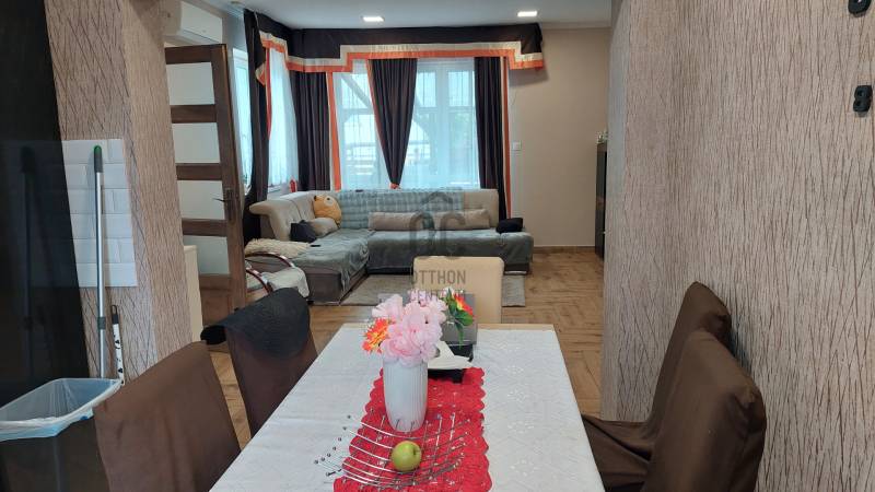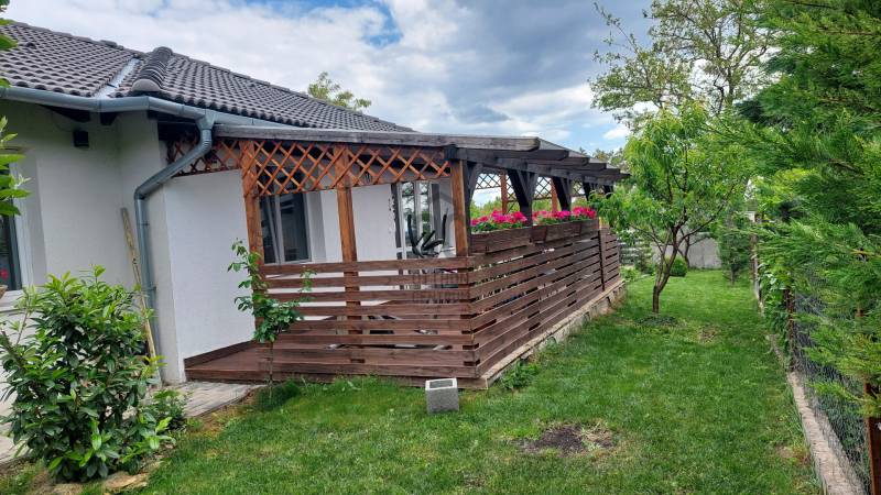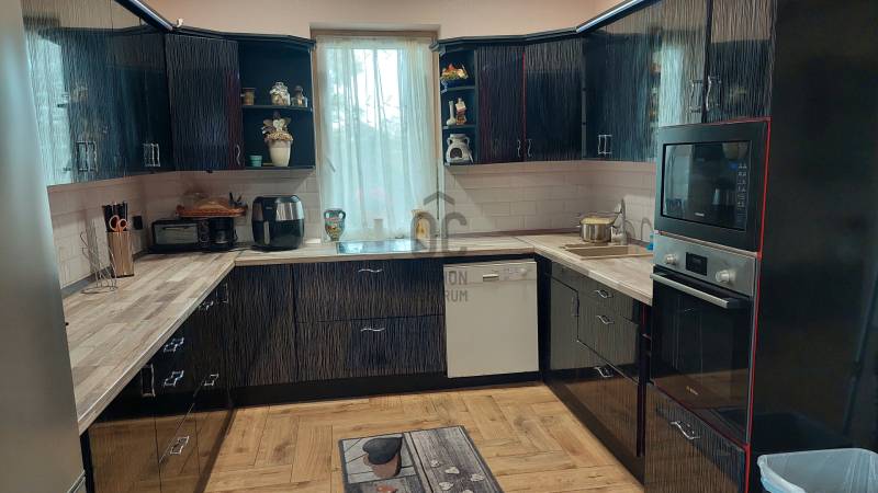 Megvételre kínáljuk Érd-parkvárosban /fundokliánál/,közvetlen a természetvédelmi terület mellett egy 1260m2-es telken, kétgenerációsnak épült családi házat.2019-ben épült beton sáv alapozással ,tégla falazattal, műanyag nyílászárokkal, cserép fedéssel,dryvit szigeteléssel.A lakások lakótere, mint egy 100 m2-es, külön bejáratokkal, külön kocsi beállókkal.Lakásonként előszoba ,nappali, konyha-étkező, 2 hálószoba, fürdő-WC, vendég WC, terasz található.A fűtése gázcirkó,és vegyes-tüzelésű kazán,radiátor hő leadással, hűtése klíma.Körbe kerített,elektromos kapurendszer.Környezete rendezett,kulturált természetvédelmi terület varázsával. |
