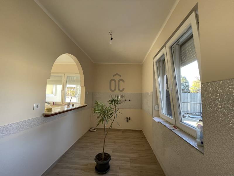 Debrecenben a Júlia-telepen eladó egy 165 m2-es, nappali+ 6 szobás, felújított, többgenerációs családi ház, amely 559 m2-es telken fekszik.Az elmúlt évben felújításra került a villany és vízvezeték hálózat, a fürdőszobák és helyiségek új burkolatot kaptak, az ingatlan külső hőszigetelése és tetőfelújítása megtörtént.Elosztását tekintve a földszinten található nappali+ 2 szoba, étkező, konyha, kamra, zuhanyzós fürdőszoba-wc.Az emeleten 4 hálószoba ( laminált parkettával burkolt) , erkély, kádas fürdőszoba és mosókonyha található.Az ingatlan melegét új kondenzációs gázkazán biztosítja, a földszinten padlófűtéssel, az emeleten pedig radiátorokkal történik a hőleadás. A külső nyílászárók műanyagok, 3 rétegű ablaküveggel, redőnnyel ellátva, a fából készült belső nyílászárók ki lettek cserélve.Ideális telek méret, több autó parkolására is alkalmas, részben térkövezett udvar, melyen megtalálható egy 35 m-es fűthető, szerelőaknával ellátott dupla garázs is.Az ingatlan adottságaiból adódóan, alkalmas akár üzleti tevékenységre, nagycsaládosok illetve generációk együttélésére, közelben buszmegálló, üzletek, boltok, iskola, óvoda is megtalálható, a belváros könnyen megközelíthető.Tehermentes, azonnal birtokba vehető.Ha az ingatlan felkeltette érdeklődését, keressen bizalommal! |