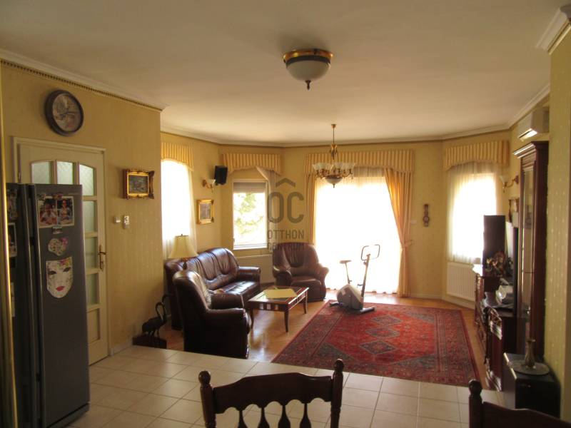 Debrecen Széchenyi kert csendes kis utcájában, két generációs,1997-ben 30 cm-es téglából épült, szigetelt, klimatizált (inverteres hűtő-fűtő),170 nm-es (135 nm + 35 nm minigarzon/iroda), 6 szobás, dupla garázsos, riasztórendszerrel ellátott, nagy teraszos (45 nm), alápincézett (54 nm), 2012-ben felújított önálló családi ház 401 nm-es telken eladó.A földszinten lévő tágas nappali-amerikai konyha-étkező mellett spájz, zuhanyzós fürdőszoba és WC van,valamint egy külön bejáratú,35 nm-es önálló minigarzon is (szoba, főzőfülke, előszoba, kádas fürdőszoba, WC), ami akár irodaként is funkcionálhat. Az emeleten 4 hálószoba valamint fürdő és wc.A fűtésrendszer korszerűsítése megtörtént:kondenzációs kazán és néhány új radiátor került be az ősz folyamán.Mivel 2 önálló lakóegység, így a fűtéskvóta is 2 lakóegységre érvényesíthető.A parkosított kertben automata öntöző rendszer, fúrt kút, grillező és tárolóhelyiség is van. |