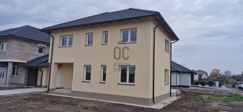 Debrecenben a Tégláskert új házakkal beépült részén, a Gázvezeték utcai forgalomtól távol, eladó egy nettó 187 m2-es, nappali-amerikai konyha + 5 szobás intim ikerház, ahol csak a garázsok érnek össze, de dupla falazattal és köztük hanggátló szigeteléssel, közel 500 m2 telekrésszel.A kivitelezés jelenleg szerkezetkész állapotban van, külső vakolás kész, a színezés után a belső munkák folytatódnak. A nyílászárók beépítésre kerültek és a tető is elkészült. A végleges belső kialakítás jelenleg még változtatható, igény szerinti helyiséglista megvalósítható. Alapból két fürdőszoba lett tervezve és három WC, de a nappali + 5 szobához az emeleten kialakítható egy harmadik fürdőszoba is, épített zuhanyzóval vagy káddal is. Az ár kulcsrakész állapotot takar, amelybe 5 kW napelemes rendszer, 12 kW hőszivattyús rendszer, térkőburkolatok és elektromos autó töltő állomás kiépítése is beletartozik. Részletes műszaki tartalommal és megtekintési időponttal kapcsolatban várjuk hívását a hét minden napján! Az ingatlanból az adásvételi szerződés megkötését követően 4 hónap múlva új otthona lehet!Állami támogatások, CSOK+, OSP (3%), babaváró igényelhetők, díjtalanul intézzük! |