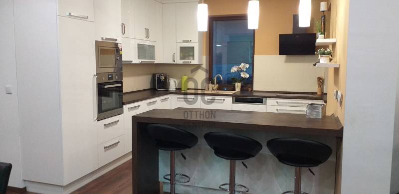 Hajdúböszörmény, Belvárosában csendes, nyugodt környezetben, prémium minőségben épített családi ház eladó. Az ingatlan egy 1000 nm-es telken található, egy különleges otthont kínál, amely a modern technológia és esztétika tökéletes harmóniáját biztosítja. Letisztult vonalak, kifinomultság jellemzi. Az ingatlan nemcsak modern, de energiahatékony is. Ez az otthon tágas belső tereket kínál a leendő tulajdonosának.Az ingatlan Bemutatása:Az ingatlan 180 nm-es alapterületén a terek harmóniája ás funkcionalitása találkozik. A földszinten egy amerikai konyhás nappali - étkező uralja a tere, kifinomult elegancia és természetes fény uralkodik. Az előtéren keresztül a garázs megközelíthető, amely dupla férőhelyes, pontosan 42 nm-es és elektromos kapuval ellátott.Az emeleten a privát szféra dominál, nappali, négy hálószoba, elegáns gardrób helyiség és egy fürdőkádas fürdőszoba található.Műszaki leírása:- 2017-ben épült, 15 cm szigeteléssel ellátott- Mitsubishi hőszivattyú lett beépítve, padló - falfűtés, mennyezeti hűtés- Napelem található 11 kw, 40 panel egység lett elhelyezve- Prémium minőségi műanyag nyílászárók kerültek beépítésre- Kamera és riasztórendszer - Automata öntözőrendszer, robotfűnyíró találhatóMelléképület:- 60 nm területű a melléképület- Kerti konyha, tároló, zuhanyzó található benne.Az ingatlanhoz tartozik egy privát kert, gondosan megtervezett udvarral.A hely családias jellegű, ugyanakkor a város központja mindössze pár perces autóútra van, így a munkahelyek, iskolák, bevásárlóközpontok és egyéb városi szolgáltatások könnyen elérhetőek. A közvetlen környezetben számos zöld terület, játszóterek és szabadidős lehetőségek állnak rendelkezésre. |
